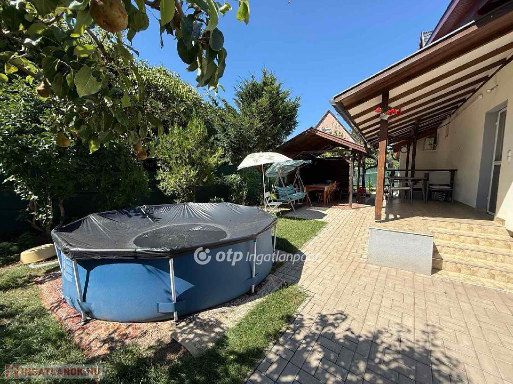 ELŐNYÖK: száraz pince, rendezett kert, kerti tároló, nagyméretű terasz, családi házas övezet, kellemes szomszédok, masszív szerkezet, riasztó, Samsung klíma, fúrt kút, új konyhabútor, biztonsági kamera, szaletli.