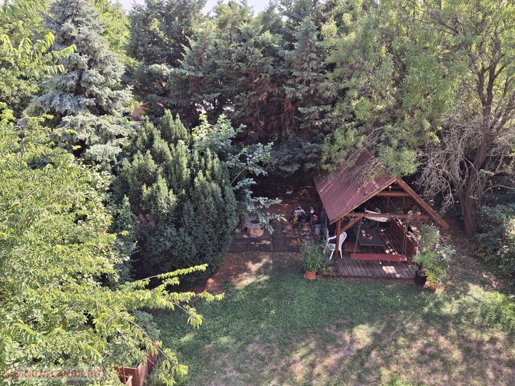 A társasház mögött van egy közös használatú 400 m2-es gondozott, füves kert, ahol szaletli, kerti bútorokkal, bográcsozó hely áll minden lakó rendelkezésére.