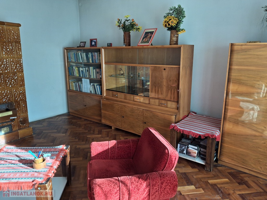 Tágas előszobából, ahol beépített szekrény is található, nyílik 2 különálló szoba, a nagyobb 20 m2, a kisebb pedig 15 m2, az előszobából nyílik a wc is, a konyha 8 m2, ahol kamra is rendelkezésre áll, a konyhából nyílik egy fürdő fülke, ülő káddal, gáz bojlerrel.