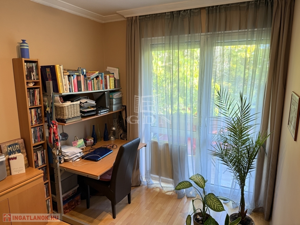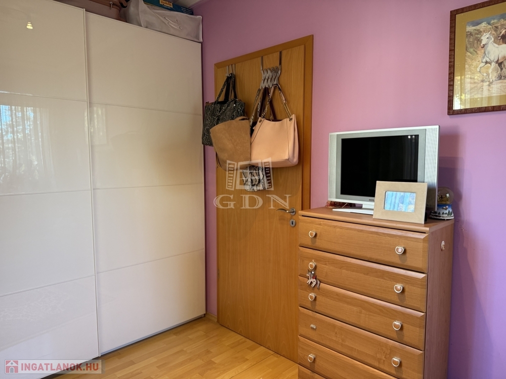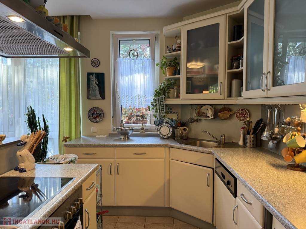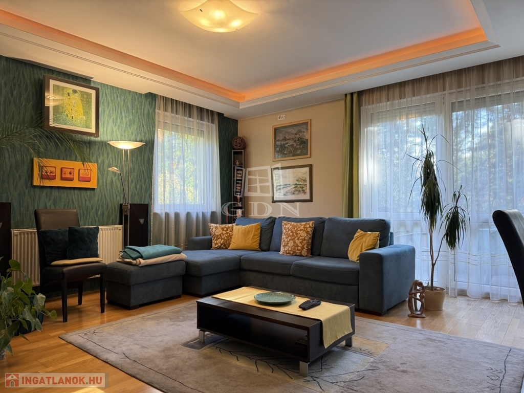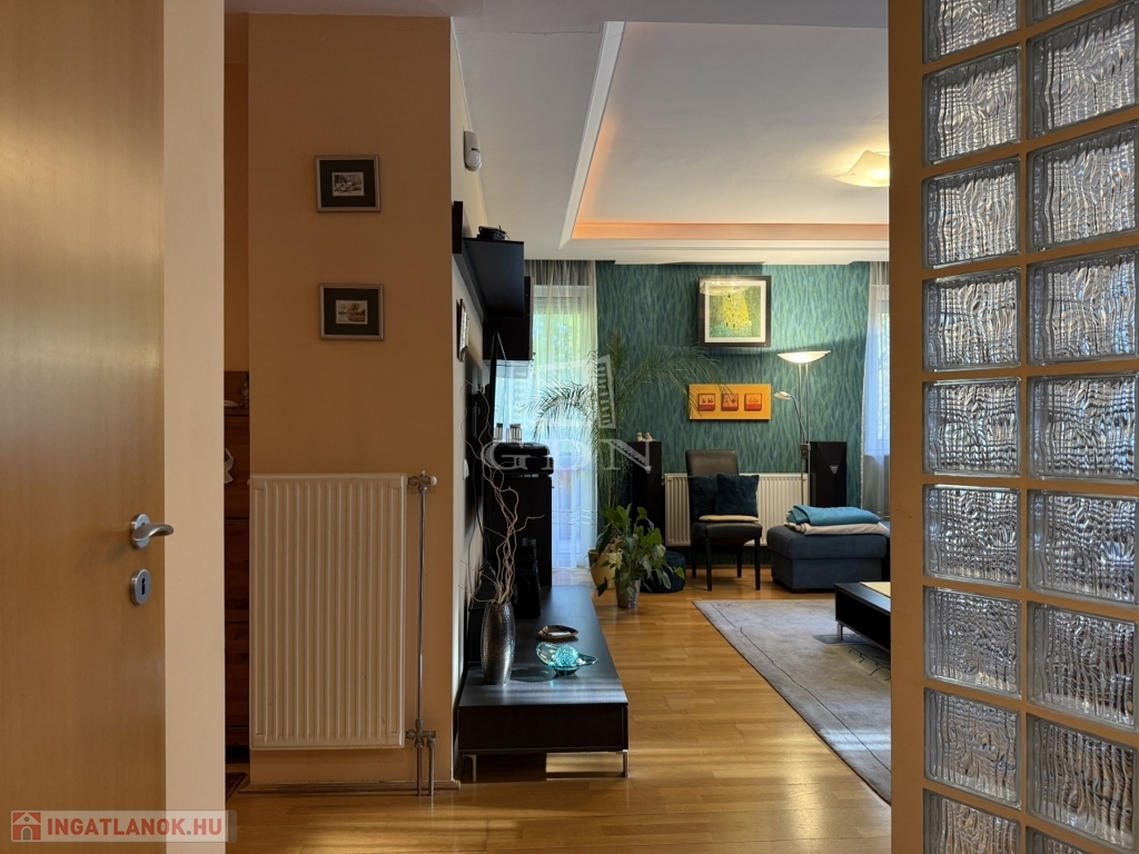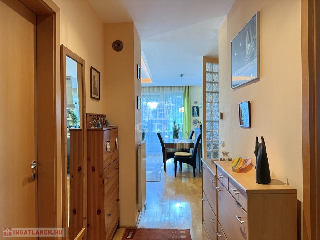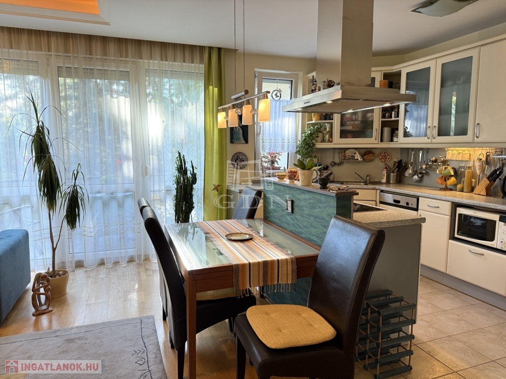 Az ingatlan 2004-ben épült, mindössze öt lakásos társasházban található, első emeleti, 81 m²-es, kifogástalan állapotú, amerikai konyhás nappalival és három hálószobával. A jól átgondolt elrendezés mellett két erkély (az egyik amerikai konyhás nappaliból nyílik, a másik pedig az egyik halószobából), ablakos fürdőszoba, külön vendég-WC, gardrób, két teremgarázs-hely és 7 m²-es tároló is tartozik hozzá.