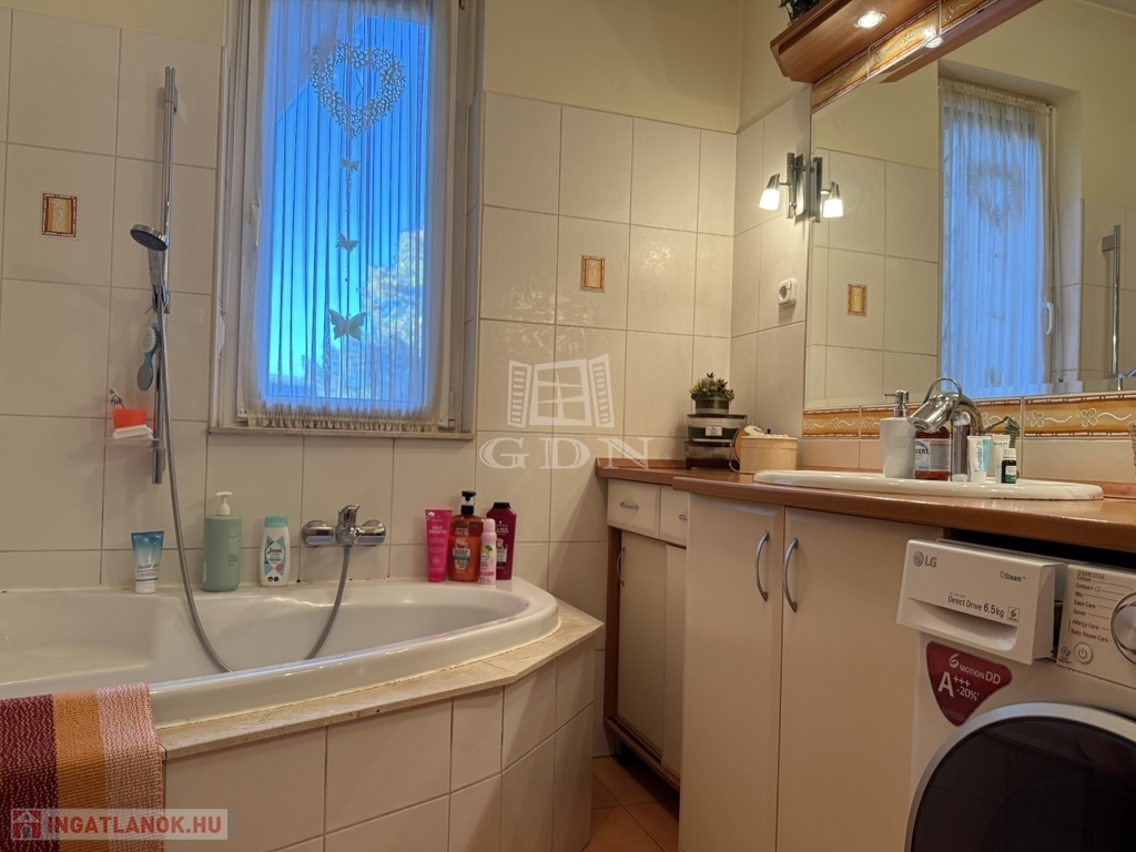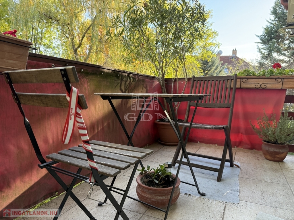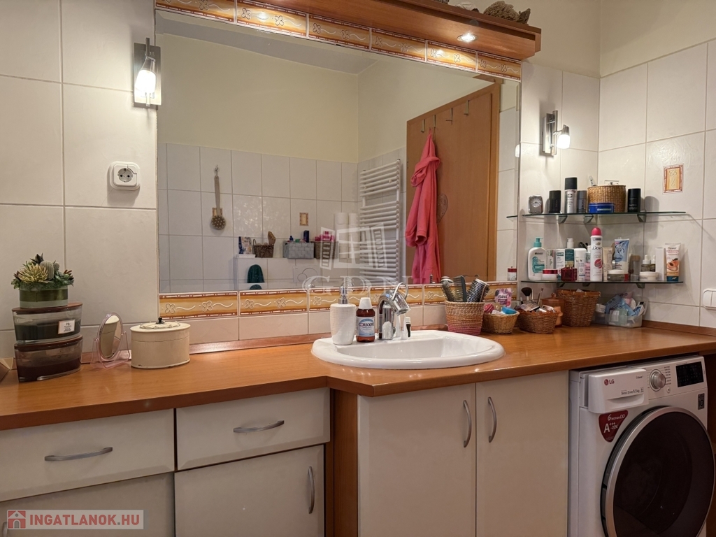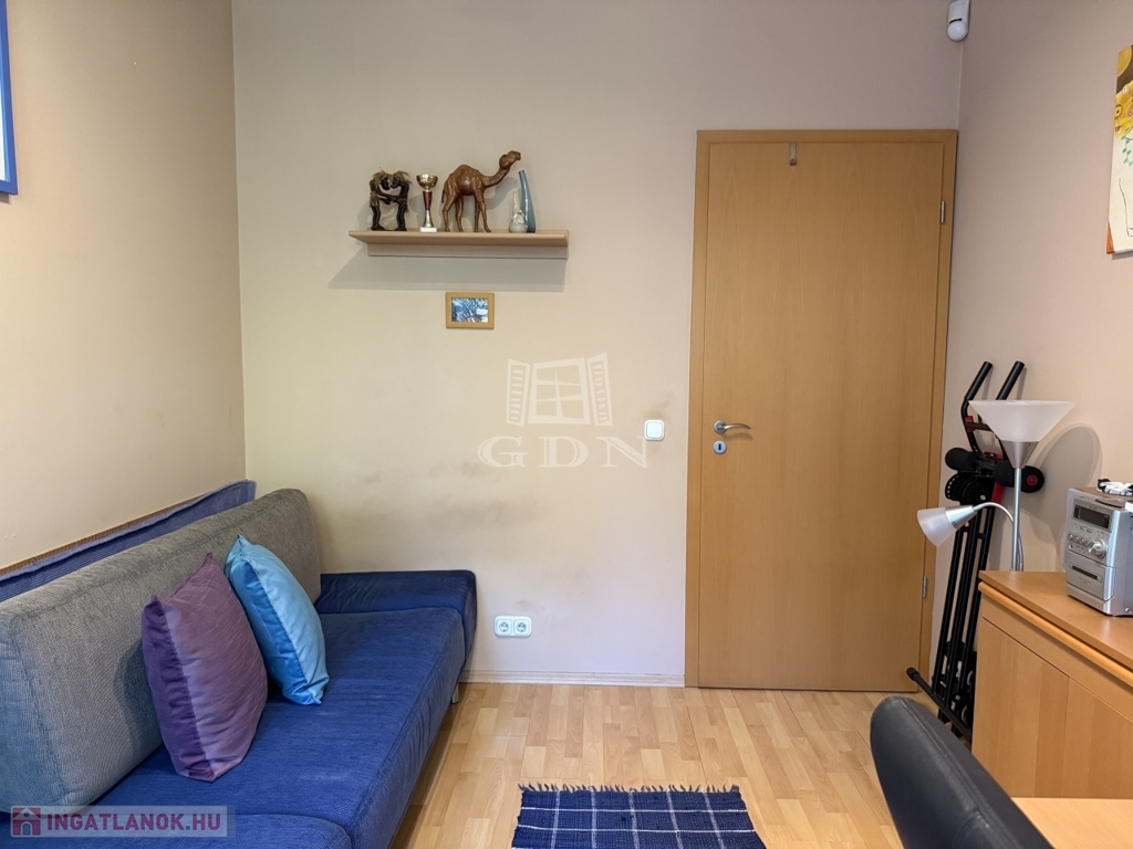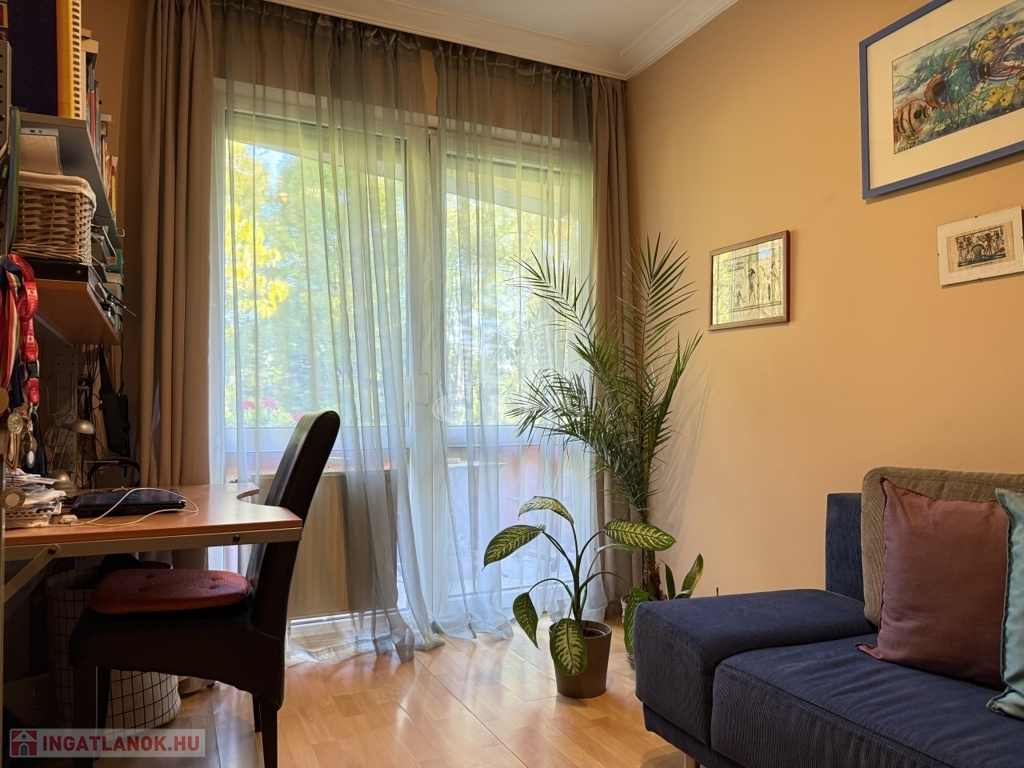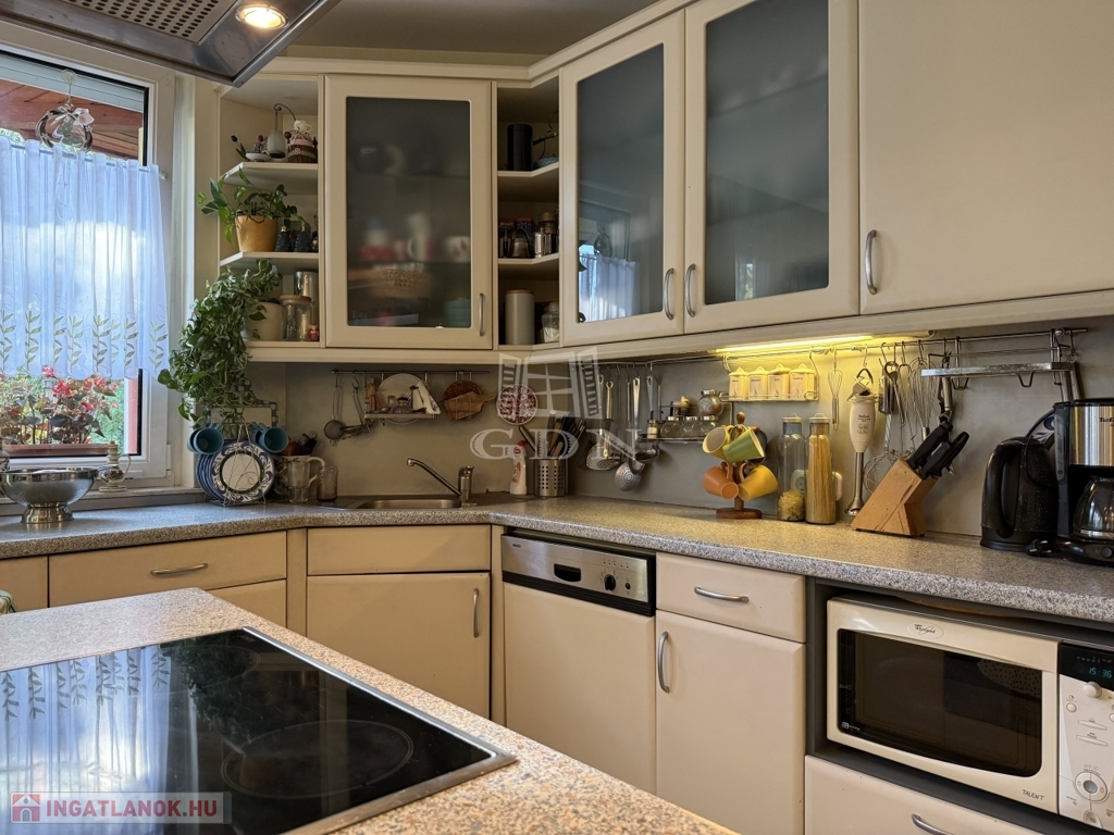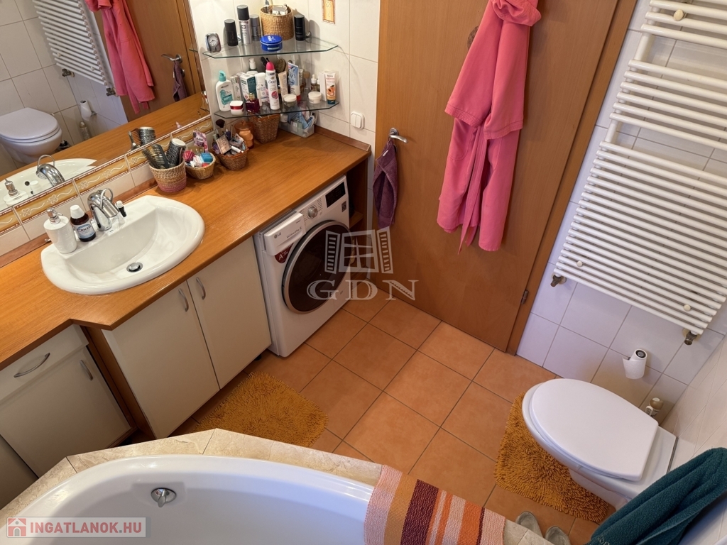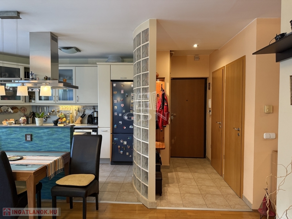 Az ingatlan 2004-ben épült, mindössze öt lakásos társasházban található, első emeleti, 81 m²-es, kifogástalan állapotú, amerikai konyhás nappalival és három hálószobával. A jól átgondolt elrendezés mellett két erkély (az egyik amerikai konyhás nappaliból nyílik, a másik pedig az egyik halószobából), ablakos fürdőszoba, külön vendég-WC, gardrób, két teremgarázs-hely és 7 m²-es tároló is tartozik hozzá.