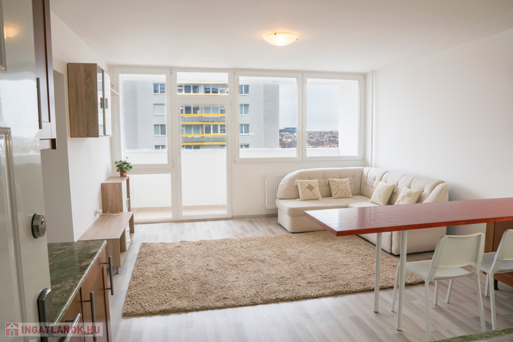 A lakás kiváló elhelyezkedésű, 45 m²-es, csúsztatott zsalus épület 12. emeletén található.