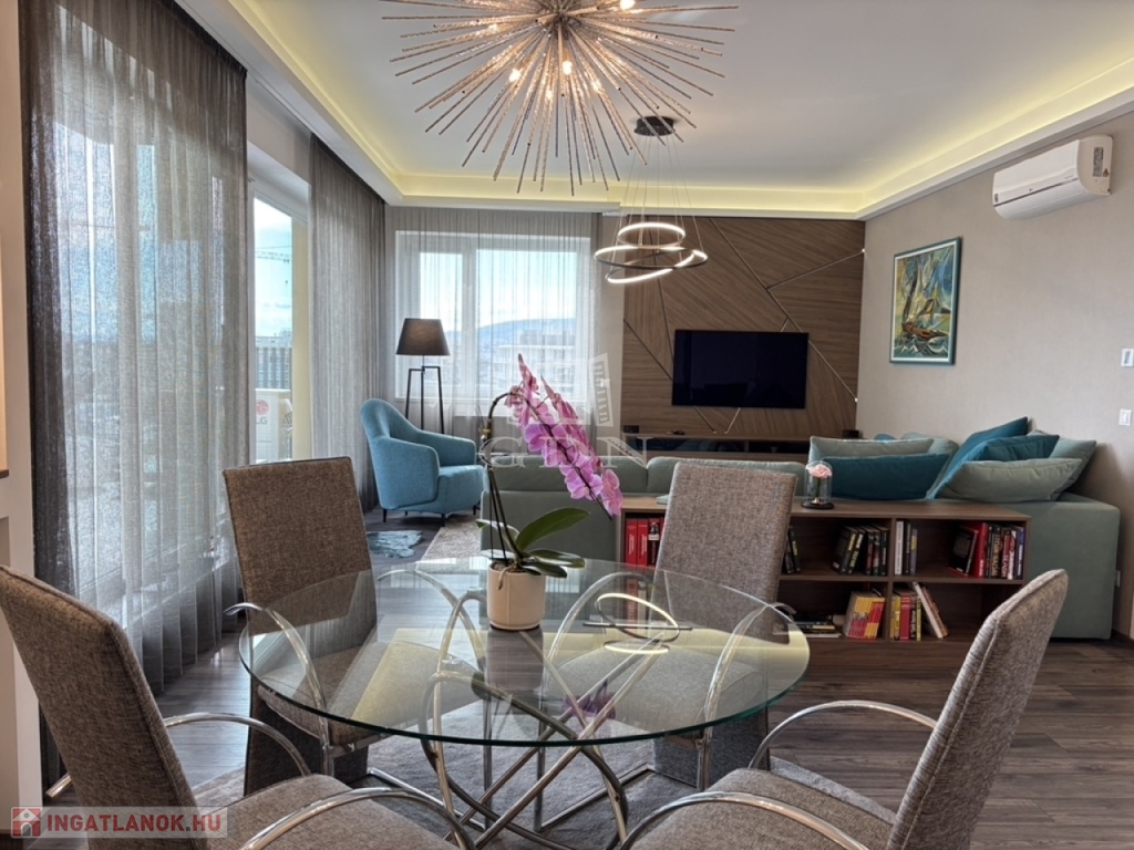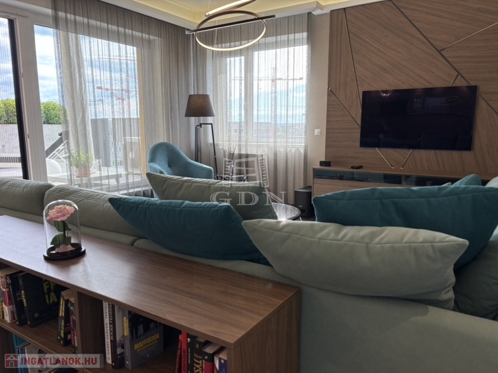 Eladó egy 89 nm-es, legfelső emeleti luxuslakás, amelyet a tágas terek (290 cm belmagasság), az igényes anyaghasználat és a prémium kivitelezés tesz igazán különlegessé. Az épület 2020-ban került átadásra, az első 12 hónapban pedig minden garanciális javítás megtörtént, valamint a teljes belsőépítészeti kialakítás is elkészült.