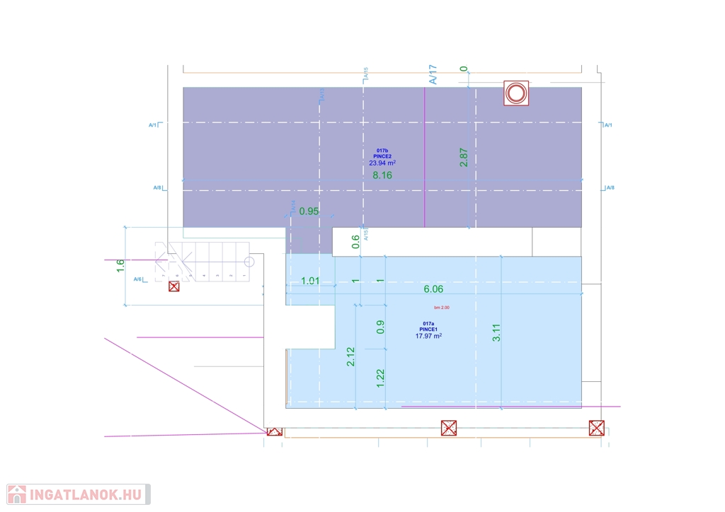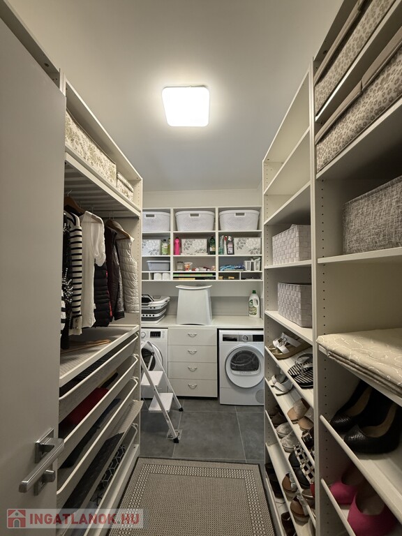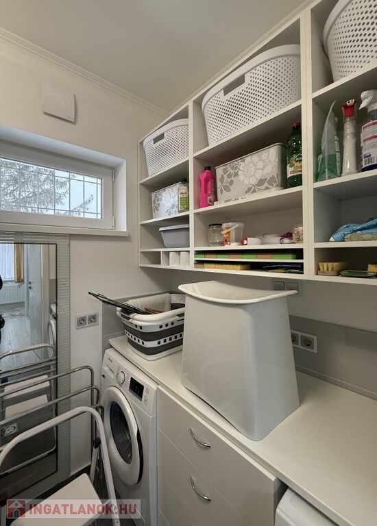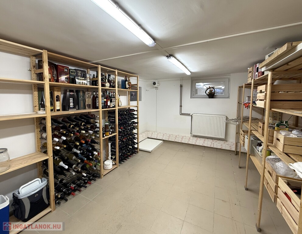 • külső fedett pincelejárattal megközelíthető ablakos 2 nagyméretű tároló helyiség (kb. 18nm és 24nm alapterületekkel), tároló és gépészeti területekkel (kazánokkal, inverterrel stb)