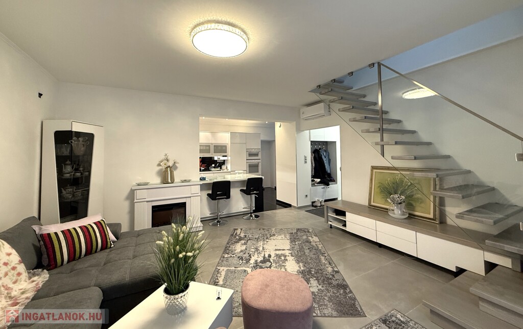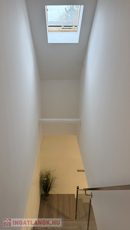 • nappali térből elegáns természetes fénnyel megvilágított lépcsővel a tetőtéri szobákhoz