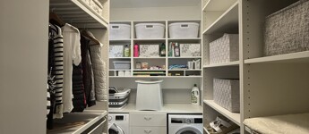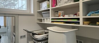 o broom (13.8 sqm) opening from the dining/wardrobe anteroom, southeast-facing (SE), with a connected windowed laundry/drying room and wardrobe leading to a private elegant bathroom: an exclusive shower area, wc, and a mirrored electric towel radiator,
