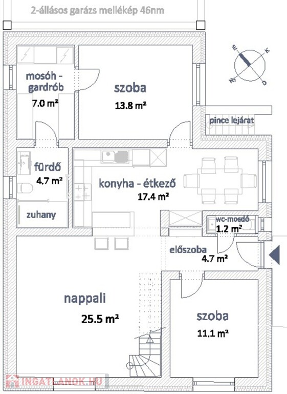PLUSZ 2 autó beállós GARÁZS MELLÉKÉPÜLETTEL (kb. nettó 46nm), plusz saját hátsó ZÖLDKERTTEL (kb. 180 nm),