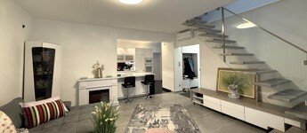 • from the living room, an elegant staircase lit by natural light leading to the attic-level rooms.