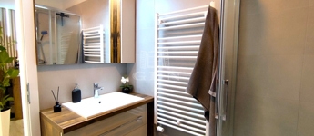 modern zuhanyzós fürdőszoba padlófűtéssel