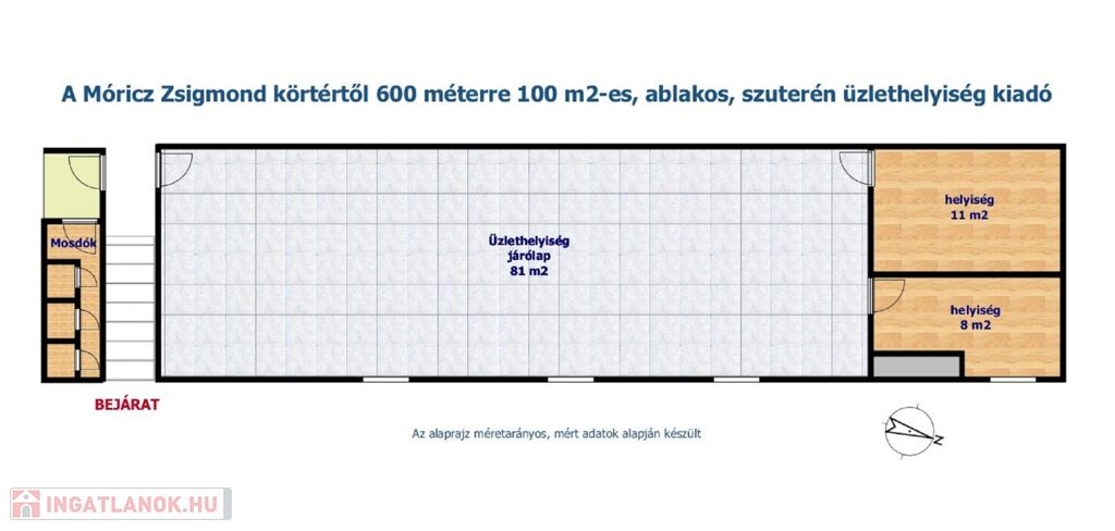 A MÓRICZ ZSIGMOND KÖRTÉRTŐL 600 M-RE 100 M2-ES SZUTERÉN ÜZLET KIADÓ