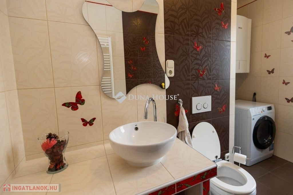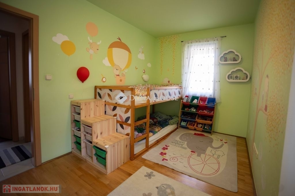Sasadon eladó egy 67 m²-es, 3 szobás 2011-ben épült lakás, 24 m²-es terasszal, 124 m²-es saját kerttel és 2 állásos garázzsal.