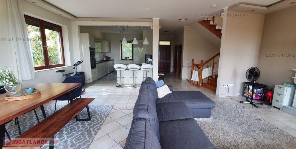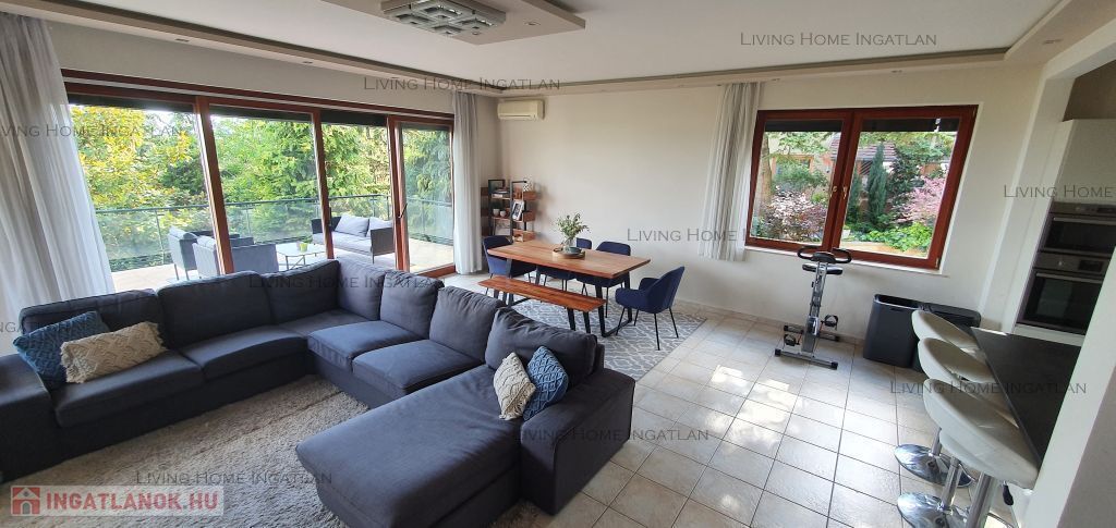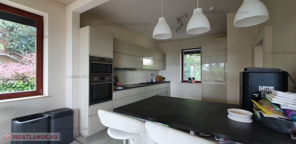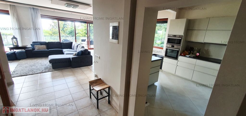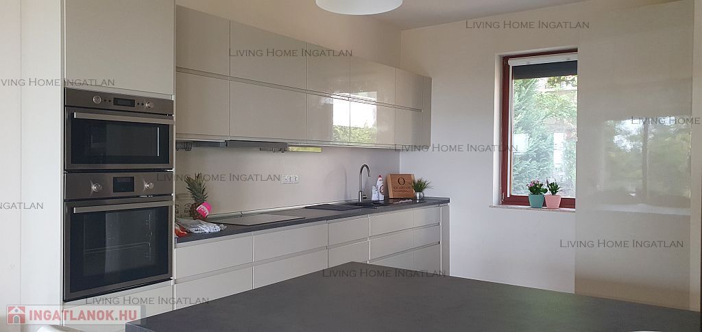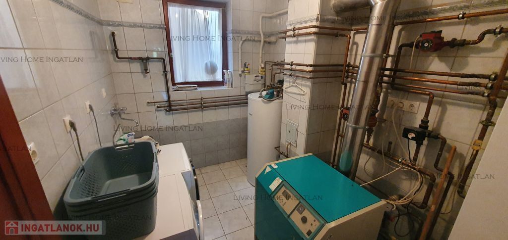 Bútorozatlan, de gépesített, klíma, riasztó, háztartási helyiség, gardrób és tároló is a kertben tartozik hozzá.