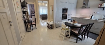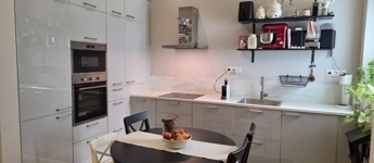 A vételár részét képezi a beépített gépesített konyhabútor, a biokandalló és a méretre készített beépített szekrények a nappaliban.