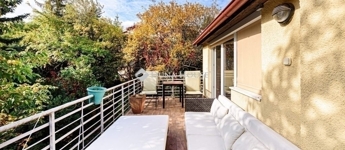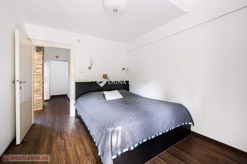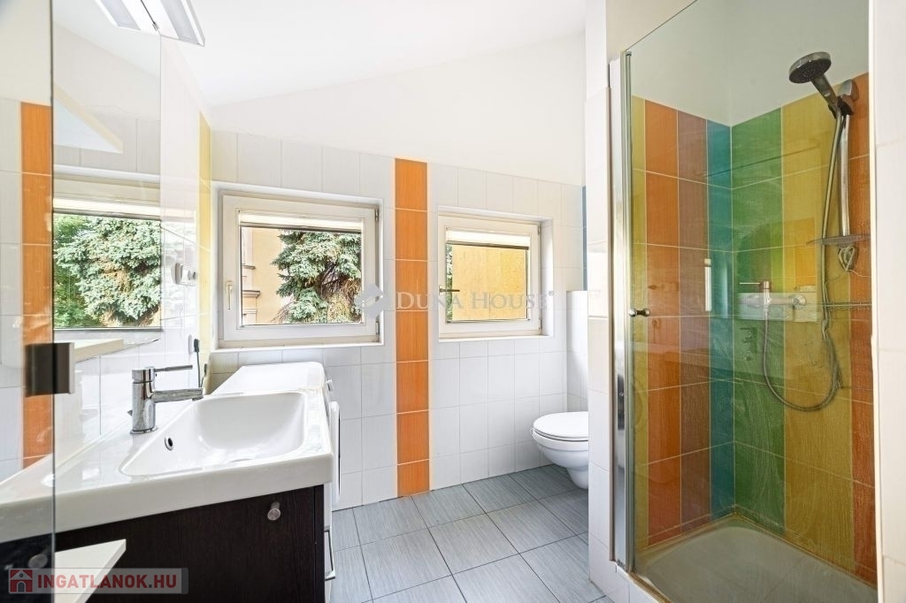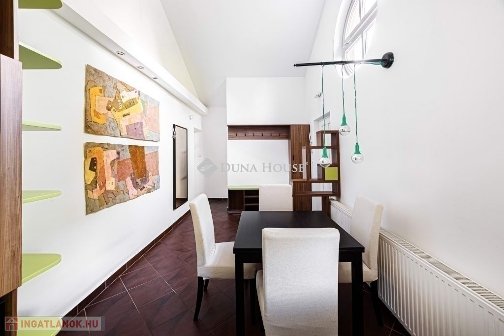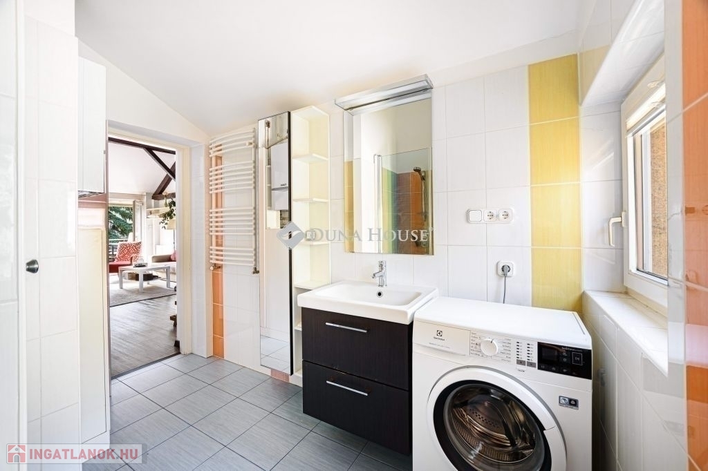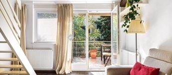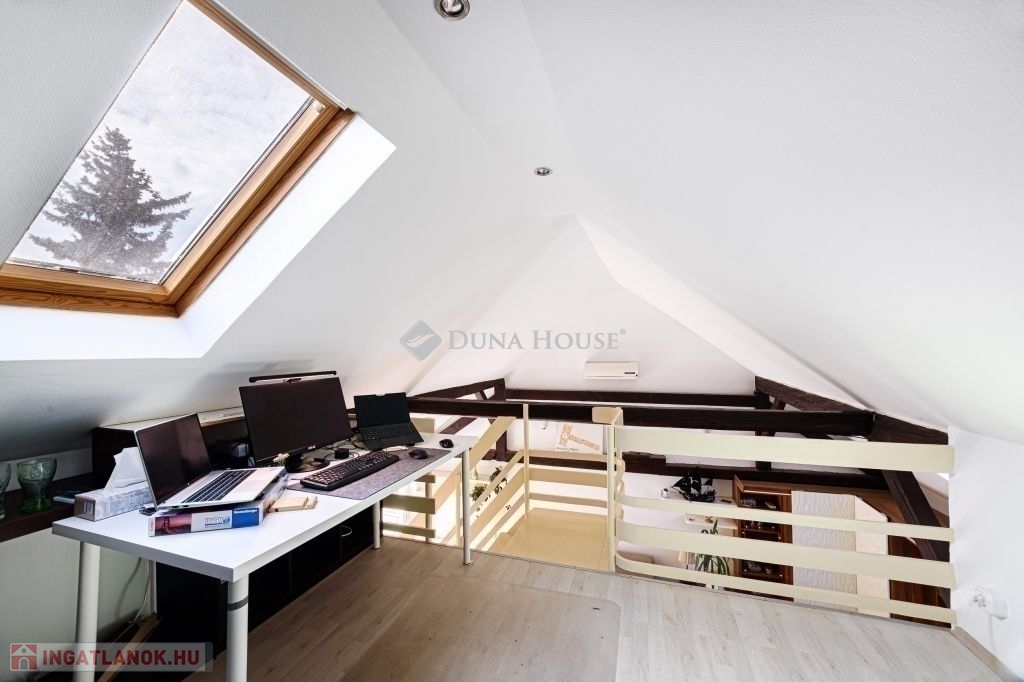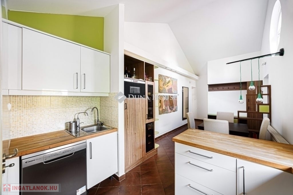 Napsütötte, tágas, teraszos otthon - KissvábhegyenBudapest egyik legkedveltebb, zöldövezeti részén, a XII. kerület Kissvábhegyén, az Ügyész utcában kínálunk megvételre egy különleges hangulatú, 80 m²-es, belső kétszintes lakást, 12 m²-es, napfényben fürdőző, kertre néző saját terasszal.A lakás egy elegáns, háromlakásos villaépület legfelső szintjén helyezkedik el, így teljes intimitást és nyugalmat biztosít tulajdonosának.A lakás különlegességei:- Lélegzetelállító terek és fényár  a 4 méteres belmagasság, valamint a rusztikus, látszó gerendás nappali egyedi karaktert kölcsönöz az otthonnak.- Kivételes tárolókapacitás  ízlésesen beépített szekrények és tágas gardrób biztosítanak rendszerezett életteret.- Csendes, zöld környezet, mégis kiváló közlekedés  a belváros mindössze percek alatt elérhető. (Busz: 21, 39, 102, 210, 212  Villamos: 17, 59, 61  M2 metró: 10 perc séta)A lakás elrendezése:- elegáns előszoba- konyha-étkező + kamra- tágas nappali rusztikus látszógerendákkal, közvetlen teraszkapcsolattal- kényelmes méretű hálószoba, szintén kijárattal a teraszra- stílusos fürdőszoba zuhanykabinnal és WC-el- a galériaszinten egy nyitott, világos dolgozó- vagy vendégszoba, beépített gardrób és extra tárolófelületekA lakás a villa felső szintjén, kb. másfél emelet magasságban található. A hozzá vezető zárható, kizárólagos használatú lépcsőház további biztonságot és extra tárolási lehetőséget kínál.A lakás teljes körű felújításon esett át, és azóta is gondosan karbantartott.Cirkófűtés és klímaberendezés gondoskodik az évszakokhoz illő kényelemről.Külső adottságok:A villa egy 1070 m²-es, ősfás, parkosított telken helyezkedik el. A lakáshoz saját kerthasználat tartozik, ahol homokozó-játszórész,  grillterasz, pihenőkert vagy veteményes is kialakítható.A kényelmet saját udvari gépkocsibeálló és külön külső tároló is szolgálja, melyek árát a vételár tartalmazza!!!Ez az ingatlan tökéletes választás azoknak, akik egy napfényes, hangulatos, otthonos lakást keresnek a XII. kerület egyik legjobb részén, ahol a zöld környezet és a városi kényelem találkozik.Ha Ön is egy egyedi atmoszférájú, magas minőségű lakásra vágyik Budapest egyik legkívánatosabb részén, keressen bizalommal a részletekért és a megtekintés egyeztetéséhez!