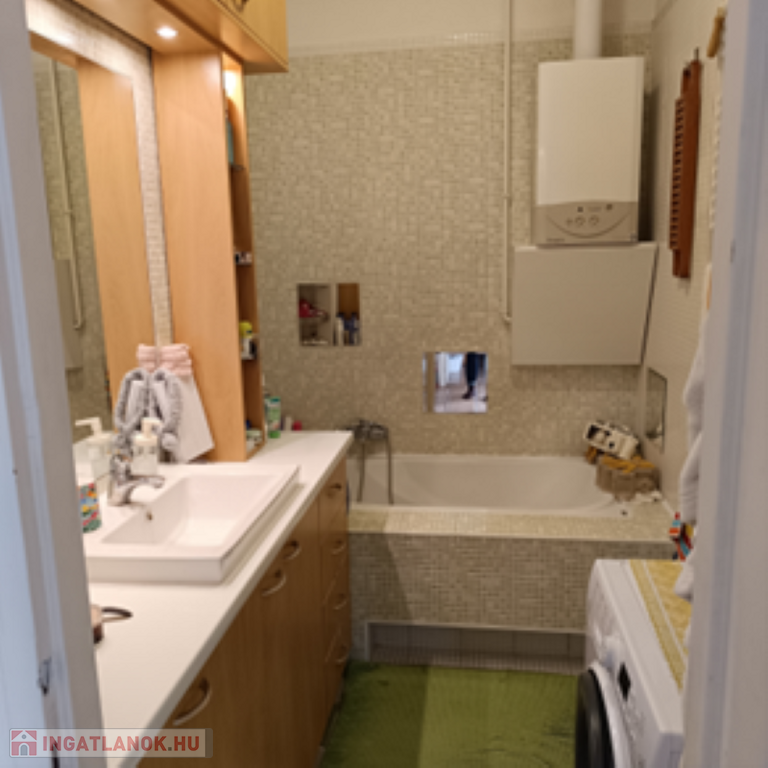 A K-Ny-i, 78 nm-es lakás nagyon kellemes, tágas, csendes, napfényes. A két kisebb szobába délelőtt süt be a nap, az amerikai konyhás, étkezős nappaliba egészen naplementéig, ami a szemben lévő Kis Sváb hegy mögött tér nyugovóra. Ennek előnyeit a kb.4 nm-es erkélyen élvezhetjük. A konyhában mosogató gép és hűtőgép is rendelkezésre áll. Fürdőszoba, külön wc és egy kisebb spájz, vagy kamra is része a lakásnak. Saját cirkóval, a nappaliban hűtő/fűtő klímával és rendezett pince rekesszel rendelkezik. A műanyag nyílászárók hét cellás ablakkal, szúnyoghálós, redőnyös szerkezettel biztosítják a lakás csendességét. Egy kis felújított lift lehetőséget biztosít, hogy a 6-dik emeletre kényelmesen jusson fel az ember. Kérésre fotót küldünk.
