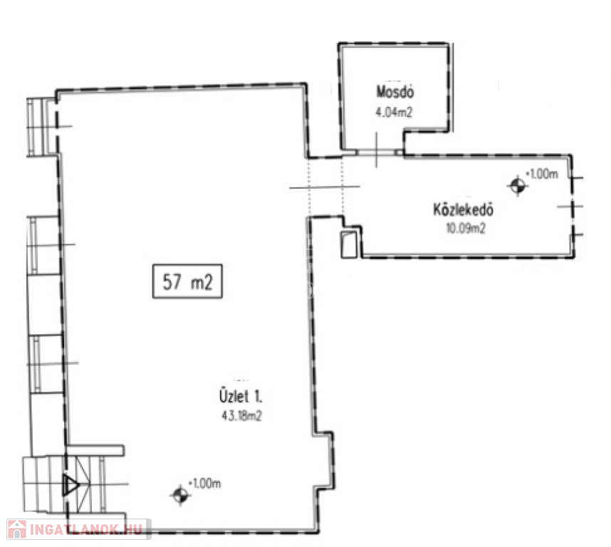 BUDAPEST XIII. kerületben, a DUNA PLÁZA közelében, 51 lakásos, liftes, téglaépítésű társasházban, utcai bejáratú, földszinten elhelyezkedő, 57 m2 alapterületű üzlethelyiség ELADÓ.