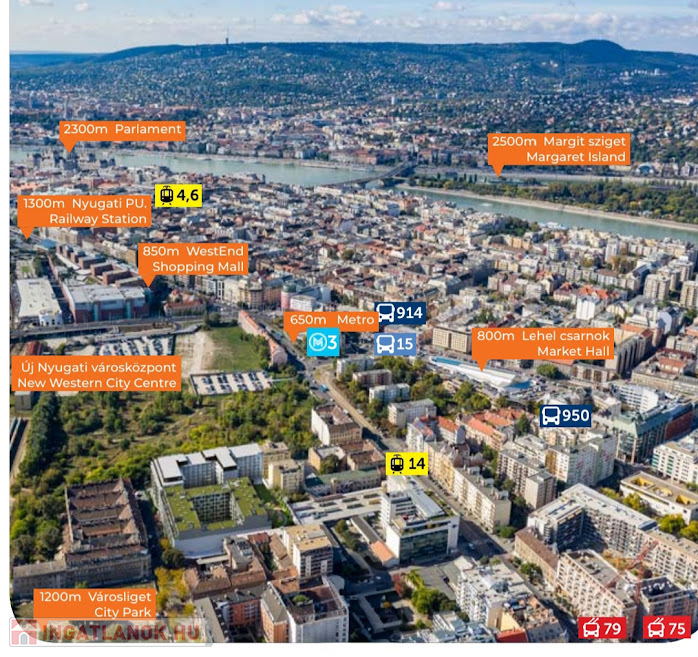 Kiváló közlekedés: busz, villamos, troli, illetve könnyű autós megközelítés a belváros felé.