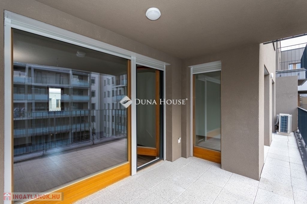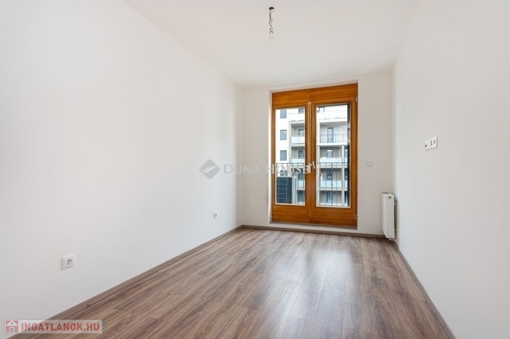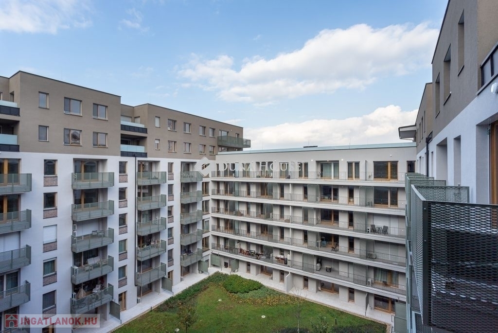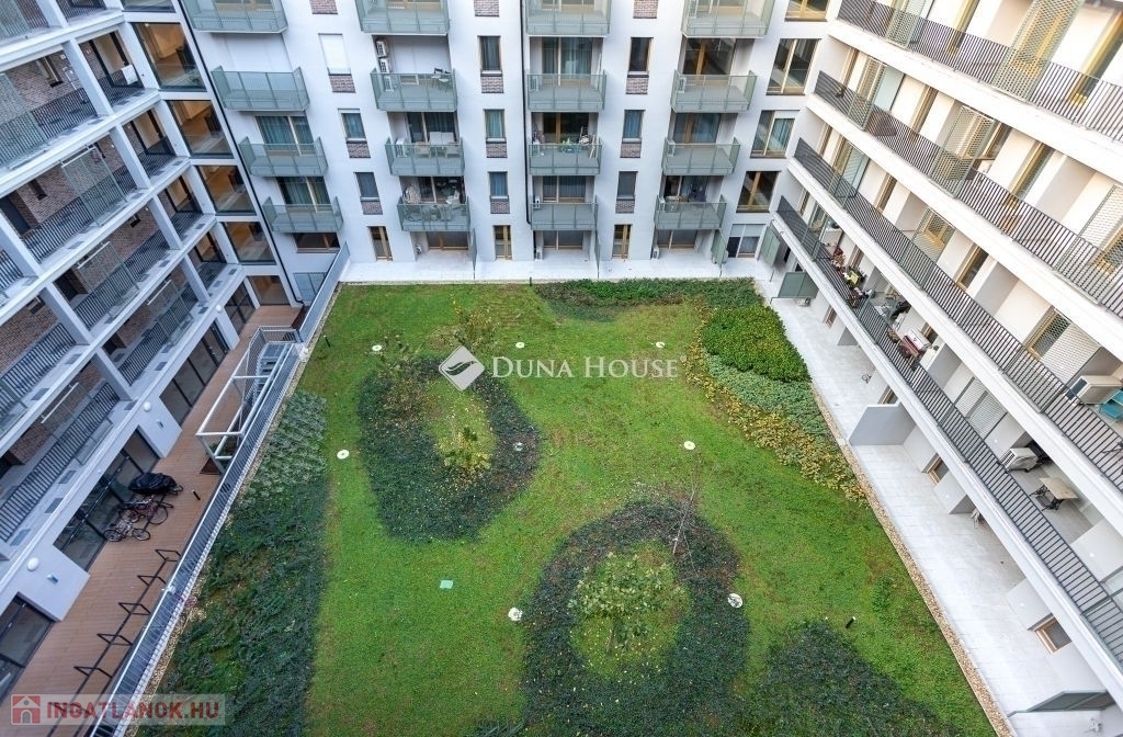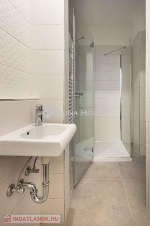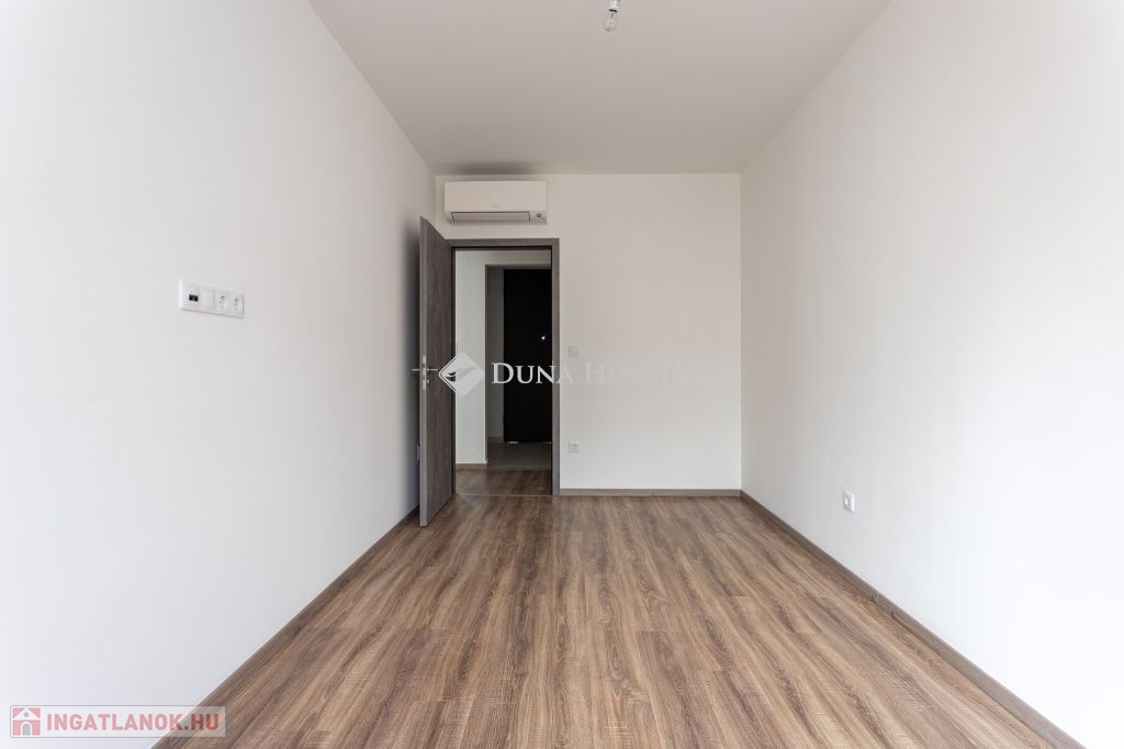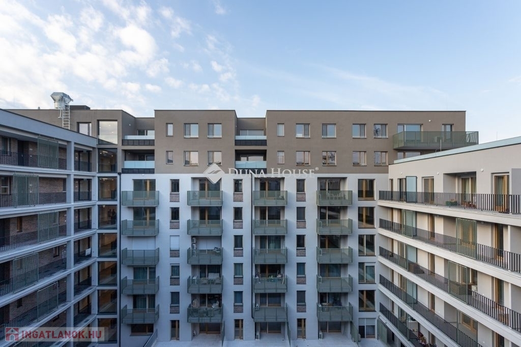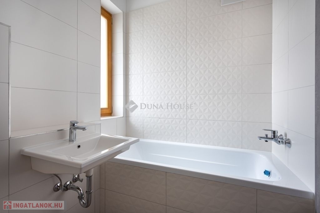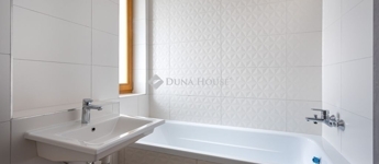 Lakás elrendezés és hangulatA lakás a XIII. kerületben, egy újépítésű lakópark hatodik emeletén található, déli tájolással, nappali + két hálós elosztással. A bejáratnál biztonsági ajtón lépsz be egy tágas előszobába, ahol kényelmesen elférnek az előszobabútorok, cipők, kabátok. Innen egy közlekedőn át jutsz a nappaliba, illetve a hálószobákhoz.A nappali nagy üvegfelülettel nyílik a terasz felé, fa nyílászárókkal, amelyek jól illenek a szürkés fa mintázatú laminált padlóhoz és a modern, sötétebb beltéri ajtókhoz. A nappalihoz ablakos amerikai konyha tartozik, így a konyha is kap természetes fényt. A konyha mellett külön háztartási helyiség/tároló kapott helyet, ahol a háztartási eszközök kulturáltan elpakolhatók.A nappaliból egy kb. 16 m²-es, részben fedett teraszra lépsz ki, amely a lakópark belső udvarára néz. A mérete alkalmas arra, hogy kinti étkezőasztalt, ülőgarnitúrát és növényeket is elhelyezz, így ténylegesen használható kültéri élettér. A hatodik emeleti magasság és az elhelyezkedés miatt a terasz intim, nincs közvetlen belátás a szomszédos lakásokból.A két hálószoba külön nyílik a közlekedőről, mindkettőben fa keretes ablakok vannak a terasz irányába, egységes, semleges padlóburkolattal. Jó arányú, jól bútorozható szobák, hálóként, gyerekszobaként vagy dolgozóként is jól használhatók.A lakás egyik erőssége a két, külön kialakított fürdőszoba, mindkettőben WC-vel. Az egyikben kád található, a másikban üvegfallal határolt zuhanykabin. A falakon modern, fehér, részben textúrált csempék vannak, nagyobb formátumú, semleges padlólapokkal. Mindkét fürdőszoba ablakos, természetes fénnyel és szellőzéssel, törölközőszárítós radiátorral.Az egész lakás színvilága visszafogott és egységes: fehér falak, fa hatású padló, szürke ajtók, fehér kerámia és króm szerelvények. Ez megkönnyíti a berendezést, szinte bármilyen stílus jól illeszthető hozzá. A lakás új állapotú, üres, azonnal költözhető.Épület és környezetA lakás modern, liftes, újépítésű lakóparkban található, szellős beépítéssel és nagy, gondozott belső kerttel. A lakóépületek a zöld udvar köré szerveződnek, a lakás ablakai és a terasz is erre a belső kertre néznek, így a mindennapi látvány inkább zöldfelület, mint forgalmas utca. A belső udvar rendezett, kialakított növényzettel, gyepfelületekkel, a ház egésze rendezett, egységes, mai megjelenésű.A lépcsőházak és közös terek tiszták, átgondoltan szervezettek, a lift a garázsszinttől a felső szintekig közlekedik. A környék városi életmódra alkalmas: bevásárlás, szolgáltatások, éttermek, a belváros és a nagyobb közlekedési csomópontok rövid sétával vagy néhány megállóval elérhetők. Aki nem akar minden nap autóba ülni, annak ez jól tervezhető lokáció.Kinek ajánlott és miért érdemes megnézniAz elrendezés, a két fürdőszoba és a nagy terasz miatt a lakás jó választás lehet fiatal párnak, akik külön hálót, nappalit és egy plusz szobát keresnek dolgozónak vagy gyerekszobának, illetve kisgyermekes családnak, akiknek fontos a zárt, zöld belső udvar és a praktikus, jól pakolható terek. Azoknak is jó megoldás, akik részben vagy teljesen otthonról dolgoznak, és szükségük van egy csendes, elkülöníthető szobára.Ha olyan új építésű, háromszobás lakást keresel, amelyben nagy terasz, két ablakos fürdőszoba, rendezett belső kertre néző kilátás és semleges, könnyen berendezhető belső terek vannak, ezt az otthont érdemes személyesen is megnézni. Időpontegyeztetésért keress bizalommal.
