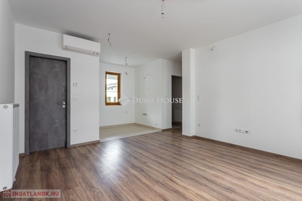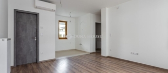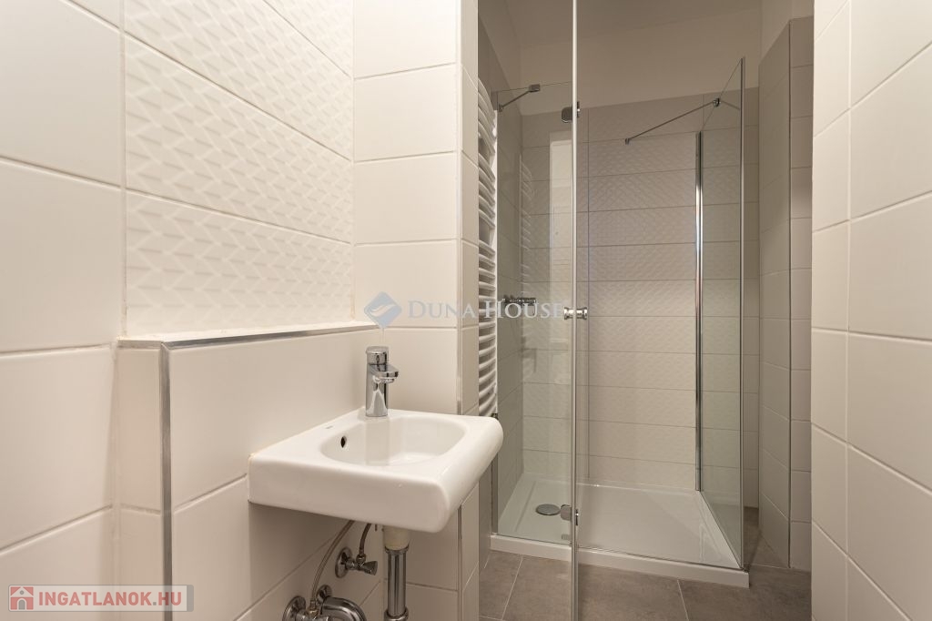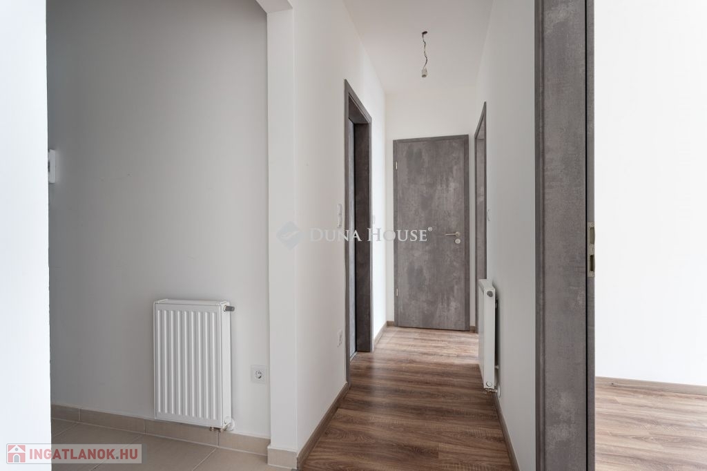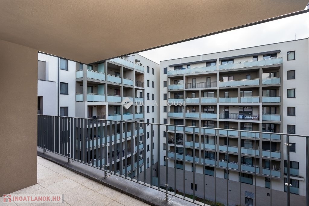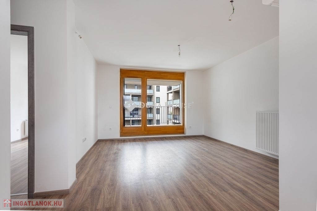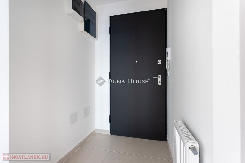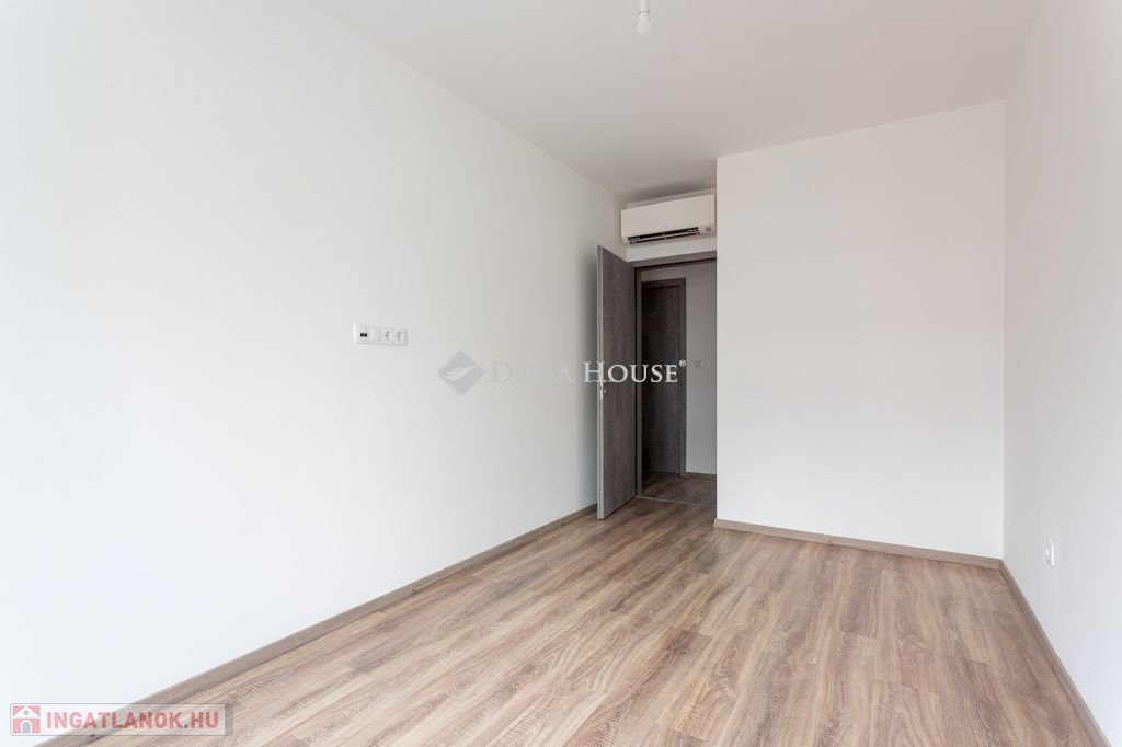 Lakás elrendezés és hangulatA lakás a XIII. kerületben, egy újépítésű lakópark hatodik emeletén található, déli tájolással, nappali + két hálós elosztással. A bejáratnál biztonsági ajtón lépsz be egy tágas előszobába, ahol kényelmesen elférnek az előszobabútorok, cipők, kabátok. Innen egy közlekedőn át jutsz a nappaliba, illetve a hálószobákhoz.A nappali nagy üvegfelülettel nyílik a terasz felé, fa nyílászárókkal, amelyek jól illenek a szürkés fa mintázatú laminált padlóhoz és a modern, sötétebb beltéri ajtókhoz. A nappalihoz ablakos amerikai konyha tartozik, így a konyha is kap természetes fényt. A konyha mellett külön háztartási helyiség/tároló kapott helyet, ahol a háztartási eszközök kulturáltan elpakolhatók.A nappaliból egy kb. 16 m²-es, részben fedett teraszra lépsz ki, amely a lakópark belső udvarára néz. A mérete alkalmas arra, hogy kinti étkezőasztalt, ülőgarnitúrát és növényeket is elhelyezz, így ténylegesen használható kültéri élettér. A hatodik emeleti magasság és az elhelyezkedés miatt a terasz intim, nincs közvetlen belátás a szomszédos lakásokból.A két hálószoba külön nyílik a közlekedőről, mindkettőben fa keretes ablakok vannak a terasz irányába, egységes, semleges padlóburkolattal. Jó arányú, jól bútorozható szobák, hálóként, gyerekszobaként vagy dolgozóként is jól használhatók.A lakás egyik erőssége a két, külön kialakított fürdőszoba, mindkettőben WC-vel. Az egyikben kád található, a másikban üvegfallal határolt zuhanykabin. A falakon modern, fehér, részben textúrált csempék vannak, nagyobb formátumú, semleges padlólapokkal. Mindkét fürdőszoba ablakos, természetes fénnyel és szellőzéssel, törölközőszárítós radiátorral.Az egész lakás színvilága visszafogott és egységes: fehér falak, fa hatású padló, szürke ajtók, fehér kerámia és króm szerelvények. Ez megkönnyíti a berendezést, szinte bármilyen stílus jól illeszthető hozzá. A lakás új állapotú, üres, azonnal költözhető.Épület és környezetA lakás modern, liftes, újépítésű lakóparkban található, szellős beépítéssel és nagy, gondozott belső kerttel. A lakóépületek a zöld udvar köré szerveződnek, a lakás ablakai és a terasz is erre a belső kertre néznek, így a mindennapi látvány inkább zöldfelület, mint forgalmas utca. A belső udvar rendezett, kialakított növényzettel, gyepfelületekkel, a ház egésze rendezett, egységes, mai megjelenésű.A lépcsőházak és közös terek tiszták, átgondoltan szervezettek, a lift a garázsszinttől a felső szintekig közlekedik. A környék városi életmódra alkalmas: bevásárlás, szolgáltatások, éttermek, a belváros és a nagyobb közlekedési csomópontok rövid sétával vagy néhány megállóval elérhetők. Aki nem akar minden nap autóba ülni, annak ez jól tervezhető lokáció.Kinek ajánlott és miért érdemes megnézniAz elrendezés, a két fürdőszoba és a nagy terasz miatt a lakás jó választás lehet fiatal párnak, akik külön hálót, nappalit és egy plusz szobát keresnek dolgozónak vagy gyerekszobának, illetve kisgyermekes családnak, akiknek fontos a zárt, zöld belső udvar és a praktikus, jól pakolható terek. Azoknak is jó megoldás, akik részben vagy teljesen otthonról dolgoznak, és szükségük van egy csendes, elkülöníthető szobára.Ha olyan új építésű, háromszobás lakást keresel, amelyben nagy terasz, két ablakos fürdőszoba, rendezett belső kertre néző kilátás és semleges, könnyen berendezhető belső terek vannak, ezt az otthont érdemes személyesen is megnézni. Időpontegyeztetésért keress bizalommal.