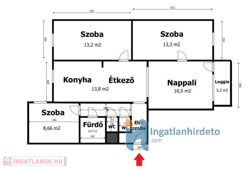 - loggiás (3,2 m2) - belső kertre néz