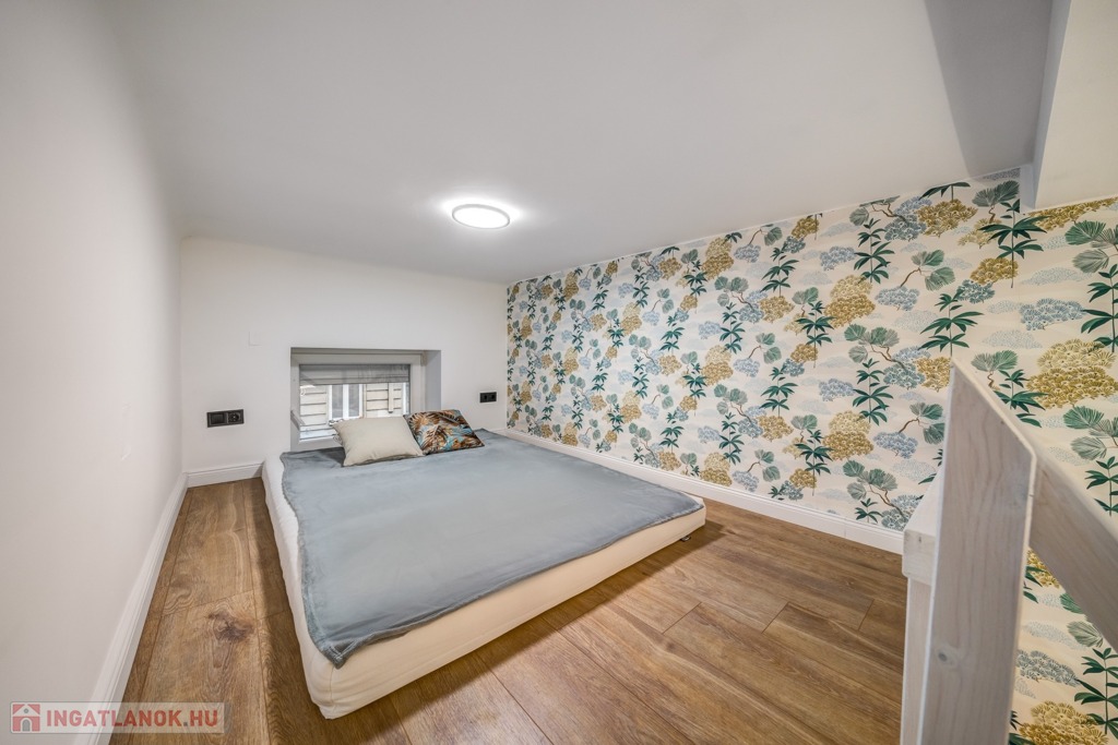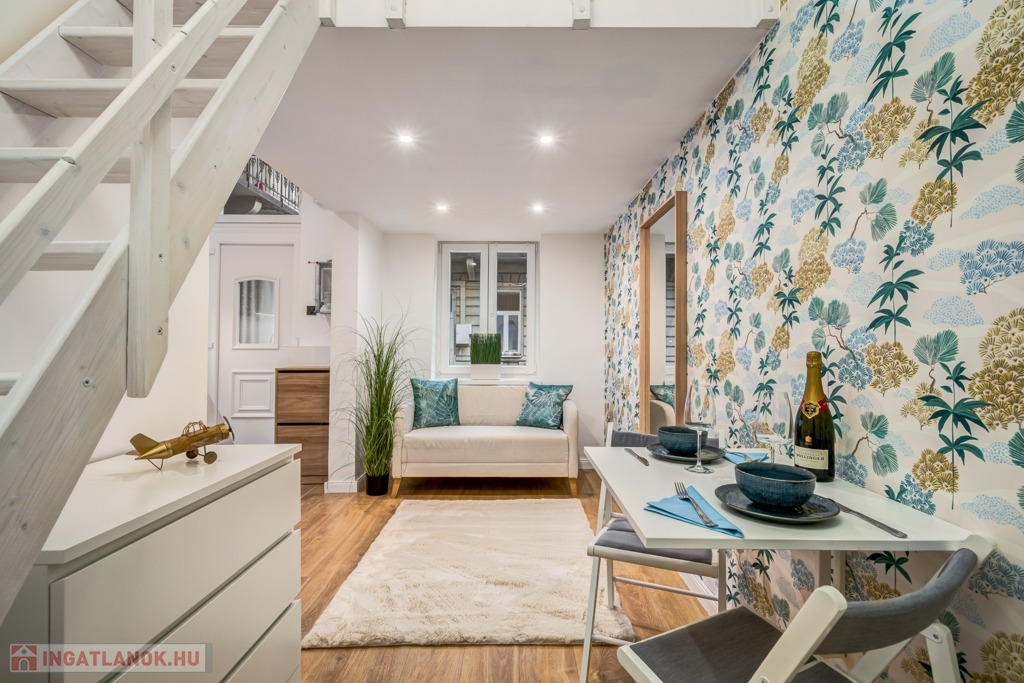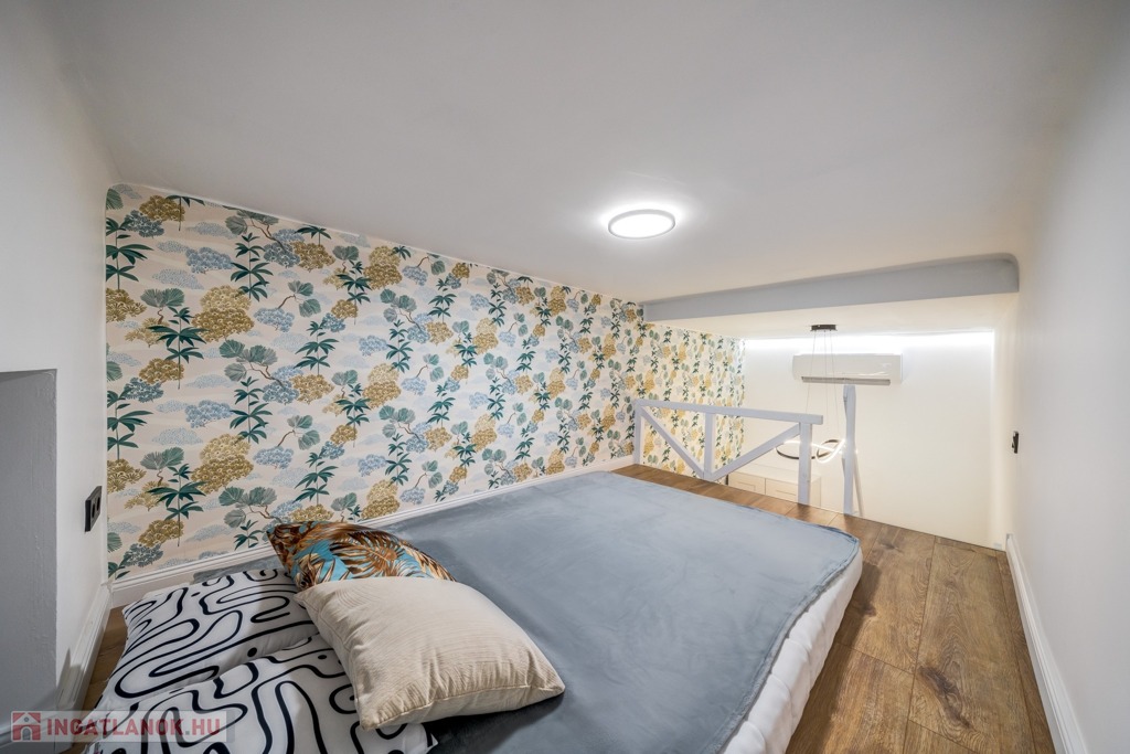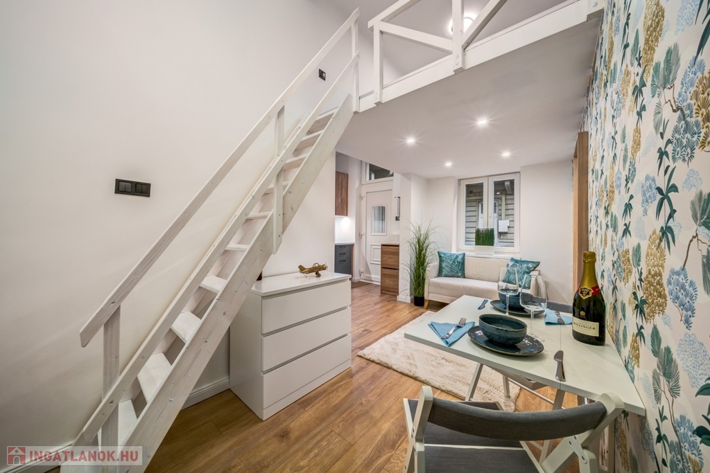 Az eladásra kínált lakás 21 nm alapterületű, amelyet egy 5 nm-es fekvőgaléria tesz még praktikusabbá és kényelmesebbé. A galérián új, 140 cm széles matrac biztosít pihentető alvást.