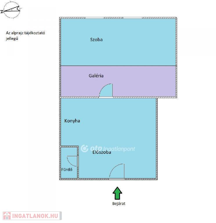 A lakás elrendezése praktikus, 15 m?-es szoba, amelyben egy 6,5 m?-es fekvőgaléria is kialakításra került a 3,5 méteres belmagasság révén.