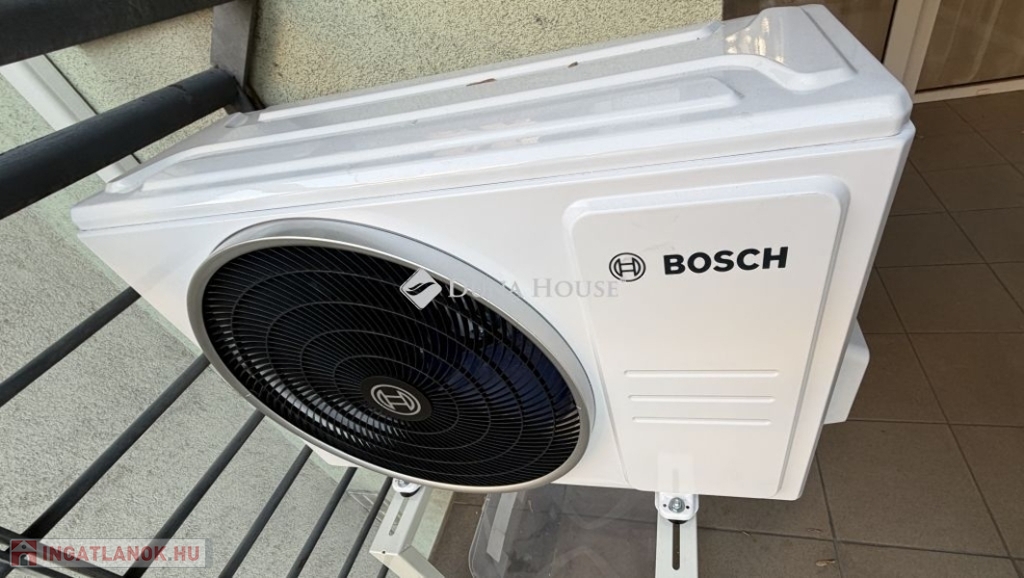 A lakás különlegessége a 6 m²-es, csendes belső udvarra néző erkély, amely reggeli kávézásra, pihenésre is ideális. A tágas nappali és a modern konyha harmonikusan kapcsolódik, barátságos, otthonos életteret teremtve. A komfortot tovább növeli a Bosch hűtő-fűtő, fűtésre optimalizált klíma, amely egész évben gazdaságos üzemeltetést biztosít.