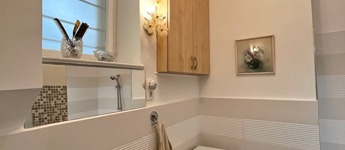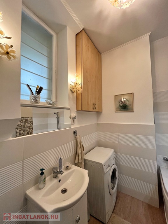A fürdőszoba kifogástalan állapotú, kényelmes káddal felszerelt.