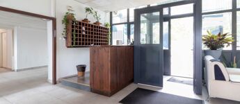 The professional environment is further enhanced by the ground-floor reception, the comfortable entrance hall that also functions as a waiting area, as well as the buffet opening from here.