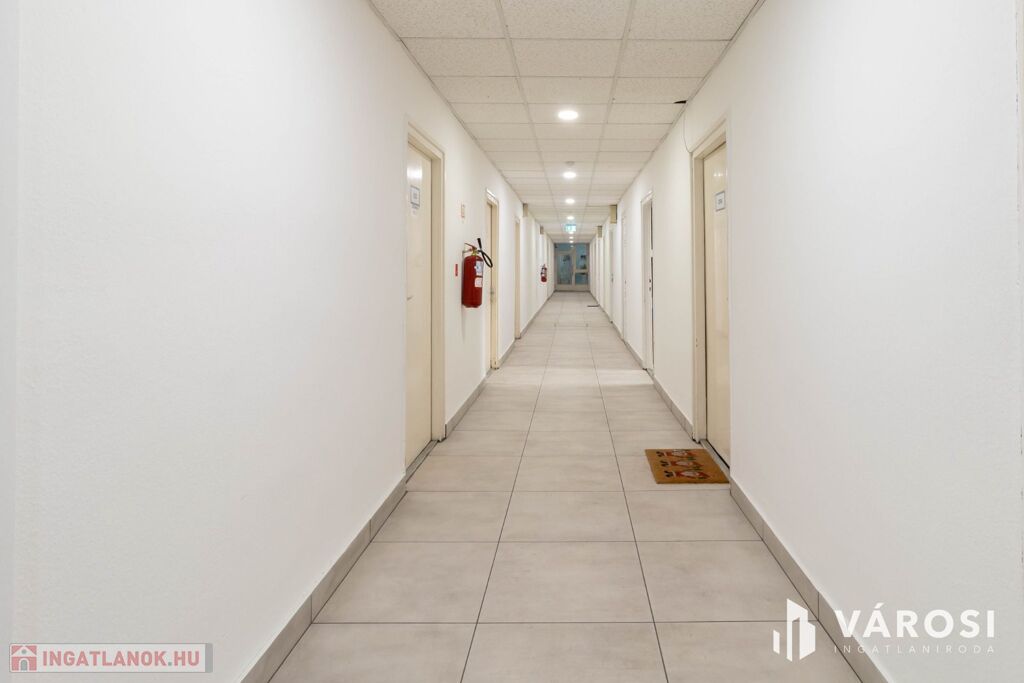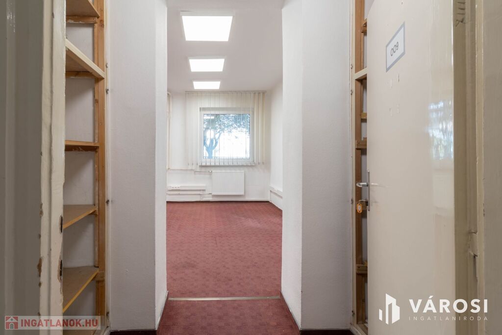 A 32 m2-es iroda az irodaház földszintjén helyezkedik el. A helyiség padlószőnyegezett.