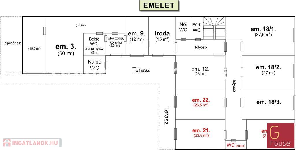 Bérleti díj: 2100 Ft / nm / hó + ÁFA akár bútorozottan is.