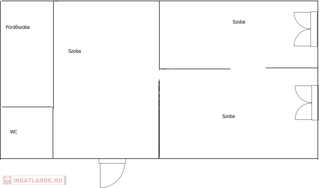 A nagyobb helyiség 24 m2 , a 2 kisebb helyiség pedig 9 és 11 négyzetméteresek.