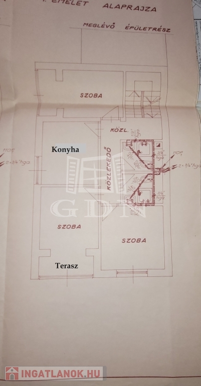 - Emelet (80 nm): teljesen felújított lakás, 3 szoba, erkély, WC, konyha, fürdőszoba WC-vel.