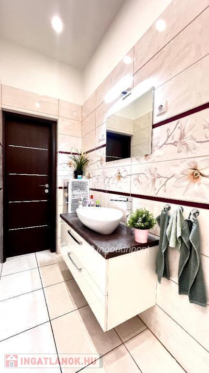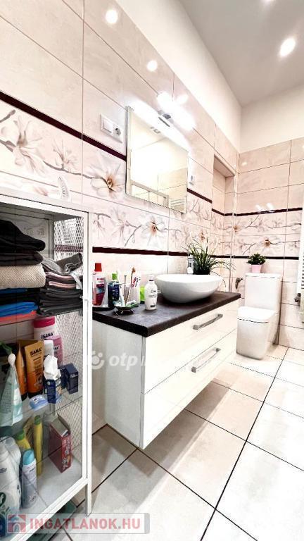 A fürdőszoba modern stílusban került kialakításra, a lakásban KÉT WC található, az egyik a fürdőszobában, a másik külön bejárattal.