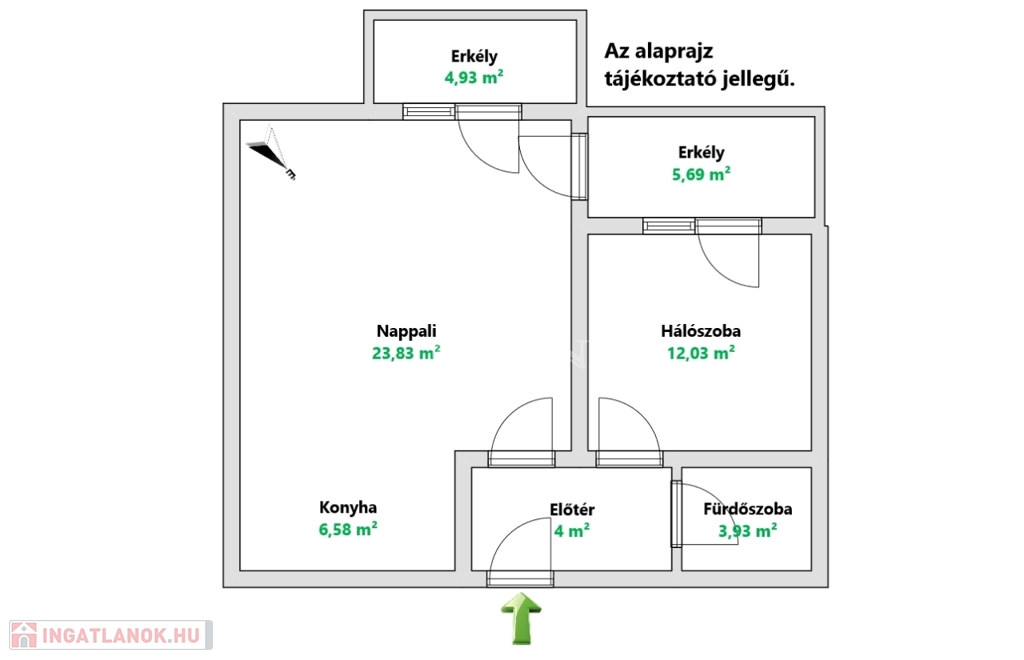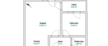A lakás jellegzetessége a dupla erkély, melyek alapterülete 6 nm + 5 nm.