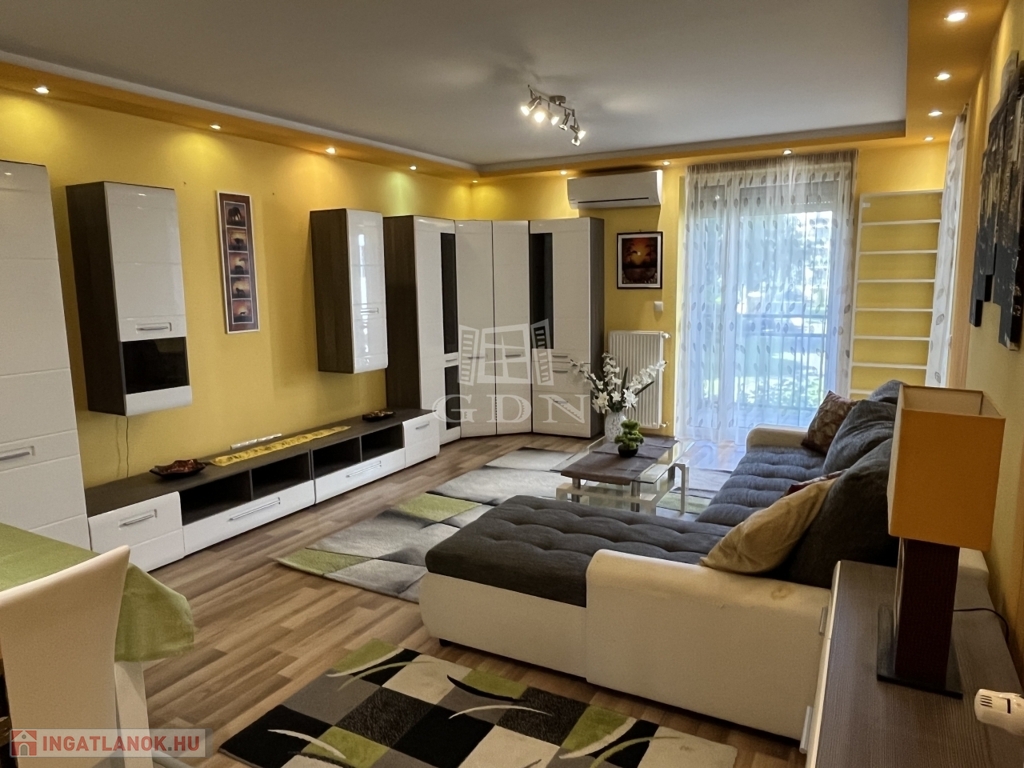 Az 56 négyzetméteres lakás rendkívül világos, 1. emeleti, két kényelmes, tágas, jól bútorozható, klimatizált szobával rendelkezik.