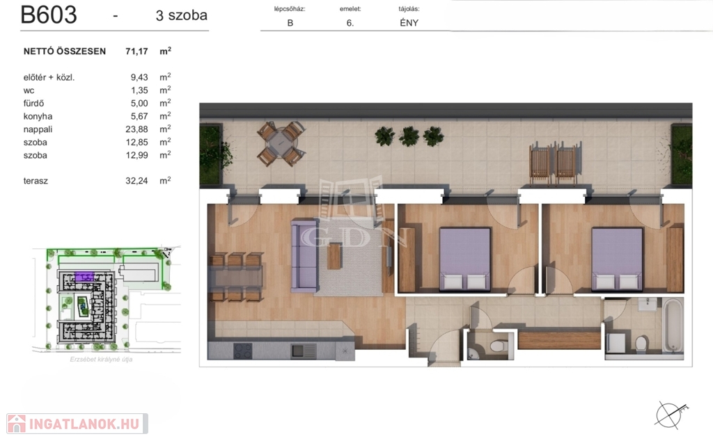 Gépkocsi beálló kizárólag lakással együtt vásárolható.