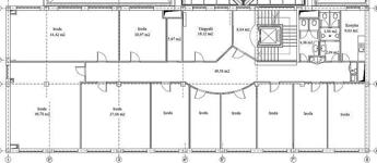 Jelenleg a szinten 11 külön,- a folyosóról nyíló iroda,- 1 db 12 fős befogadóképességű tárgyaló,- férfi és női mosdó és teakonyha található.
