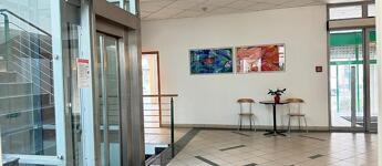 Az iroda szintet üvegliften és lépcsőn keresztül érjük el , az épület saját recepcióval és kamerarendszerrel felszerelt.