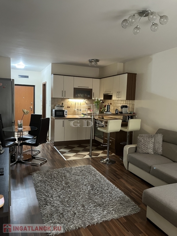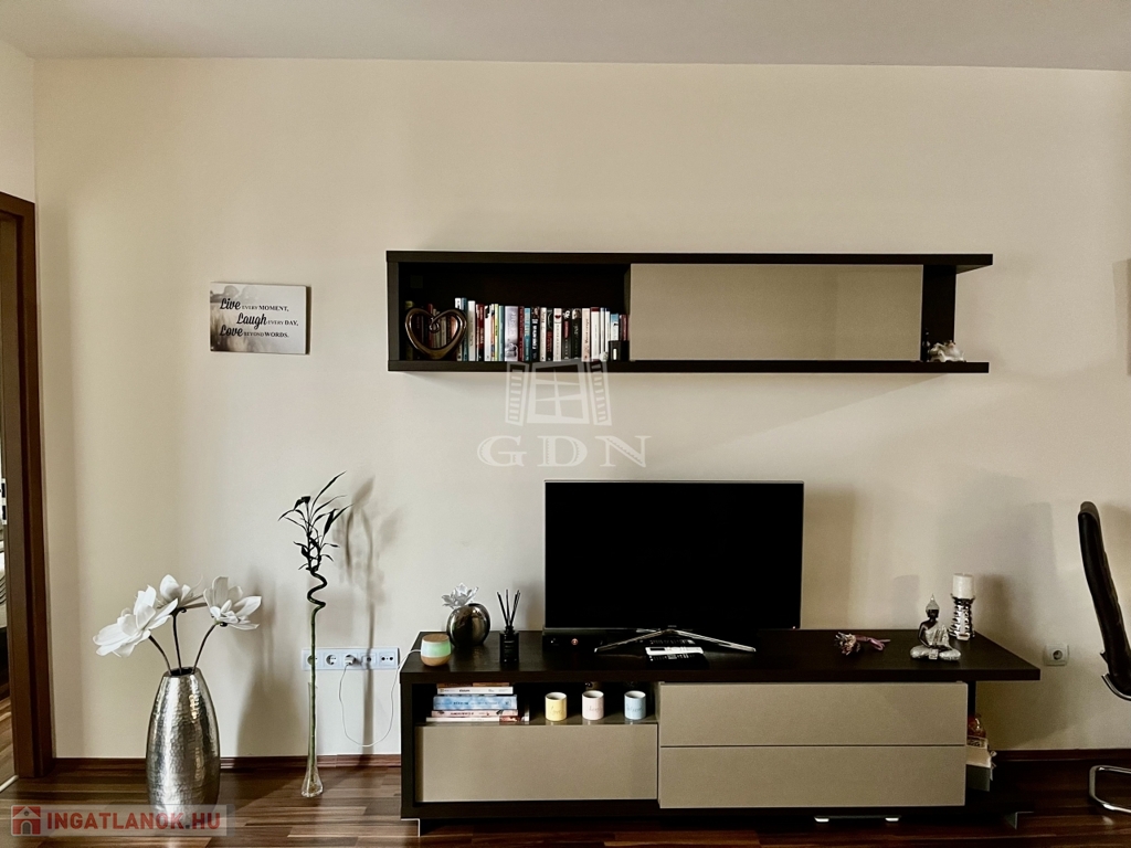 A lakás két kényelmes szobából áll, ideális választás lehet egyedülállóknak vagy kisebb családoknak.