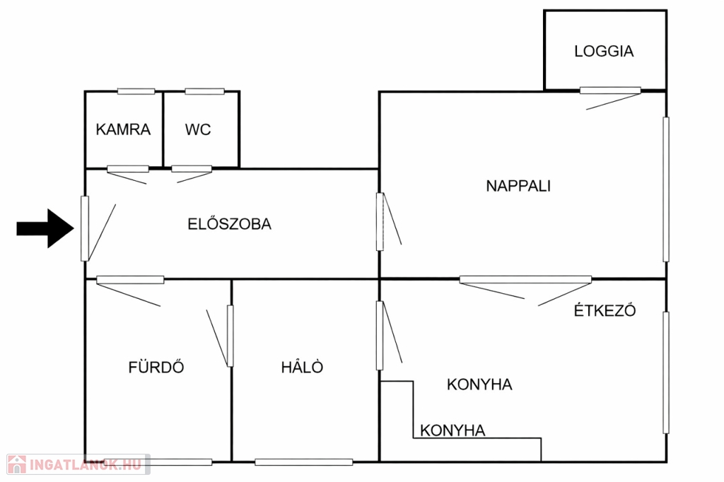 A lakás elosztása kiváló, a fürdőszobája is ablakos, WC külön helyiségben található, extra tárolási lehetőségként az előszobából nyíló gardrób szolgál.