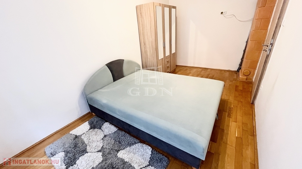 A lakás csendes, belső kertre néz, nyugati tájolásának köszönhetően világos. Elosztása praktikus: két nagyszoba, külön fürdőszoba és WC, hatalmas konyha, valamint kamra is rendelkezésre áll. A lakáshoz saját pince tároló tartozik.
