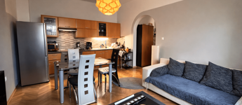 A nappaliban beépített konyhabútor található, amely tartalmazza a szagelszívót, elektromos tűzhelyet és hűtőt is.