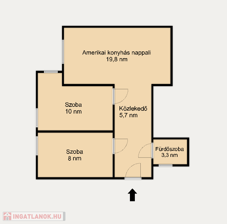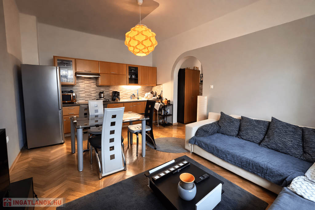 Az ingatlan két félszobából, amerikai konyhás nappaliból (beépített konyhabútorral), fürdőszobából és közlekedőből áll. A lakás világos, csendes, a hátsó udvarr néz, ahol kellemes, nyugodt környezet biztosított.