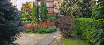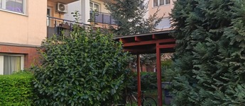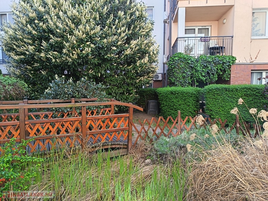 kert, a játszótér, a padok és virágok kellemes környezetet nyújtanak a lakók számára.