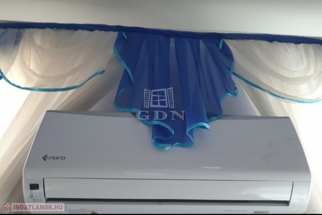 A házban hűtő-fűtő klíma működik, fűtése gázkonvektoros.
