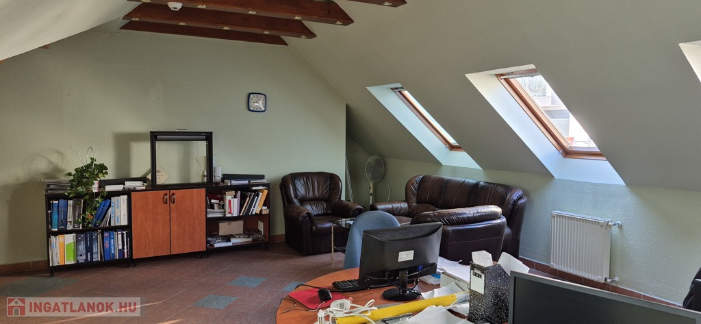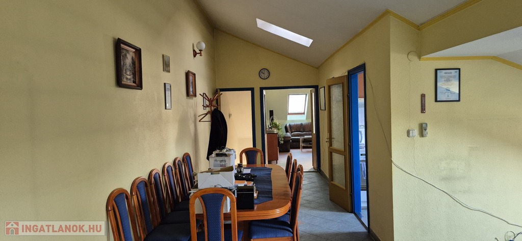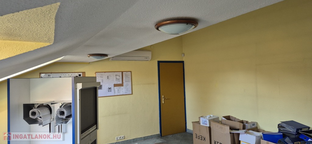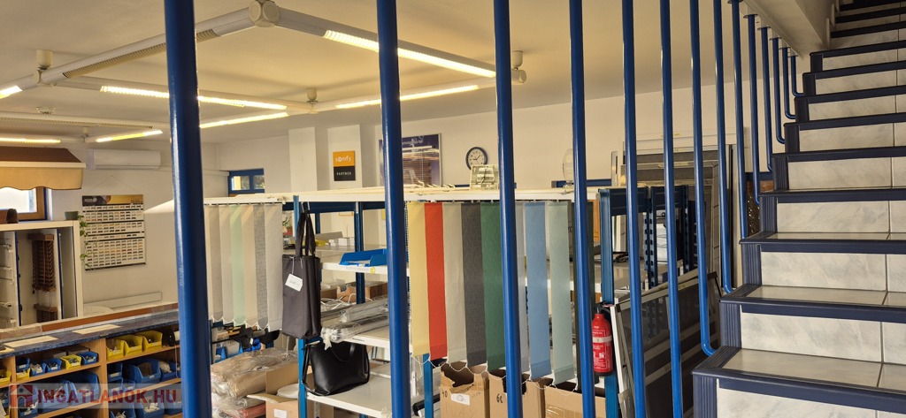 A földszinten tágas, 50 m²-es eladótér található, irodahelyiségekkel, raktárral, valamint egy 114 m²-es, világos, sokablakos üzemi résszel, két udvari bejárattal. Innen lépcső vezet a tetőtérbe, ahol szintén 114 m²-es üzemi terület, továbbá tárgyaló, iroda, ebédlő és fürdőszoba kapott helyet. A tetőtéri irodaszintről külön lépcső vezet vissza az eladótérbe, így a belső közlekedés rugalmasan használható.