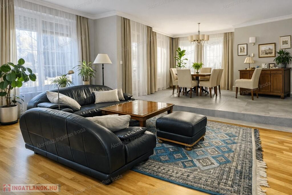 Eladó egy 389 m²-es, 7 szobás, tágas ikerházfél 550 m²-es saját kerttel, amely ideális választás nagycsaládosoknak, két generáció együttélésére vagy akár befektetési célra is.