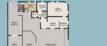EMELET = zárt, fűtött épület 130 m2