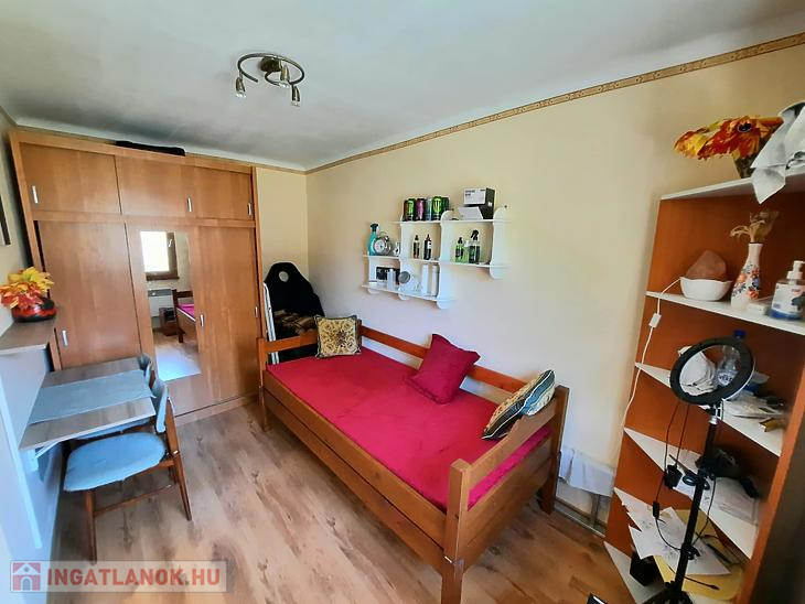 Szoba, konyha, fürdőszoba áll rendelkezésre. A nyílászárók műanyagok, hőszigeteltek, szúnyoghálóval lettek ellátva, a bejárati ajtó egy több ponton záródó biztonsági ajtó. A víz- és villanyhálózat 10 éve cserélve lett. A fürdőszoba és a konyha burkolatai 5 éve kerület felújításra. A szobásban 2 éve új laminált parkettát helyeztek le, a többi helyiség pedig járólapos. A fűtést elektronos svéd panel biztosítja. A tetőtér 5 éve lett újra lécezve, szigetelve, beépíthető, engedélyeztethető szintráhúzással a lakótér. A teljes bútorzat és a klíma a vételár részét képezi. Autóbeálló van az ingatlanhoz.